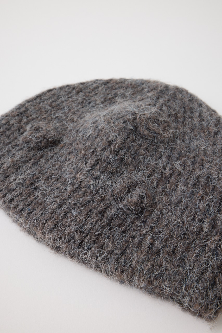 フラワーモチーフのニットビーニー。