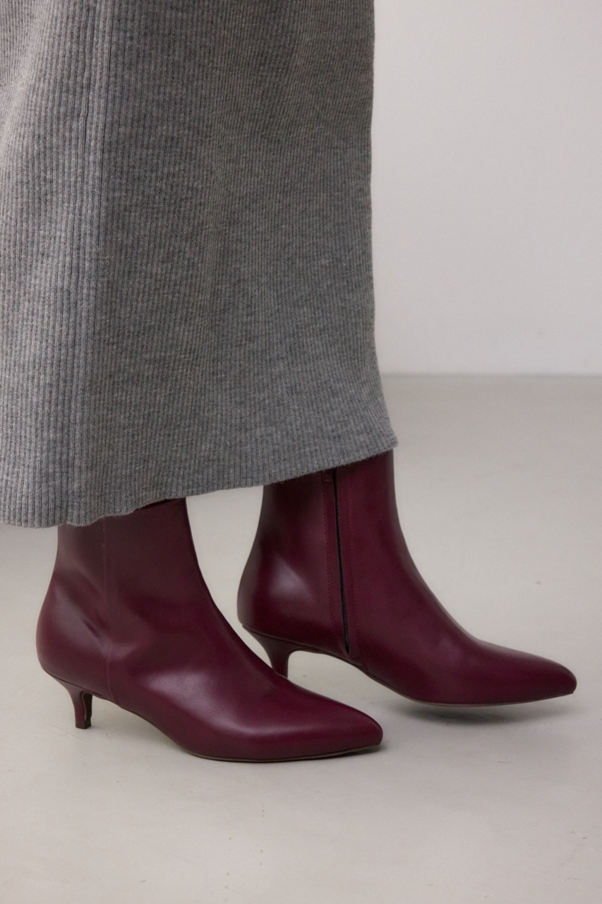 今季トレンドのポインテッドトゥデザインのショートブーツ。