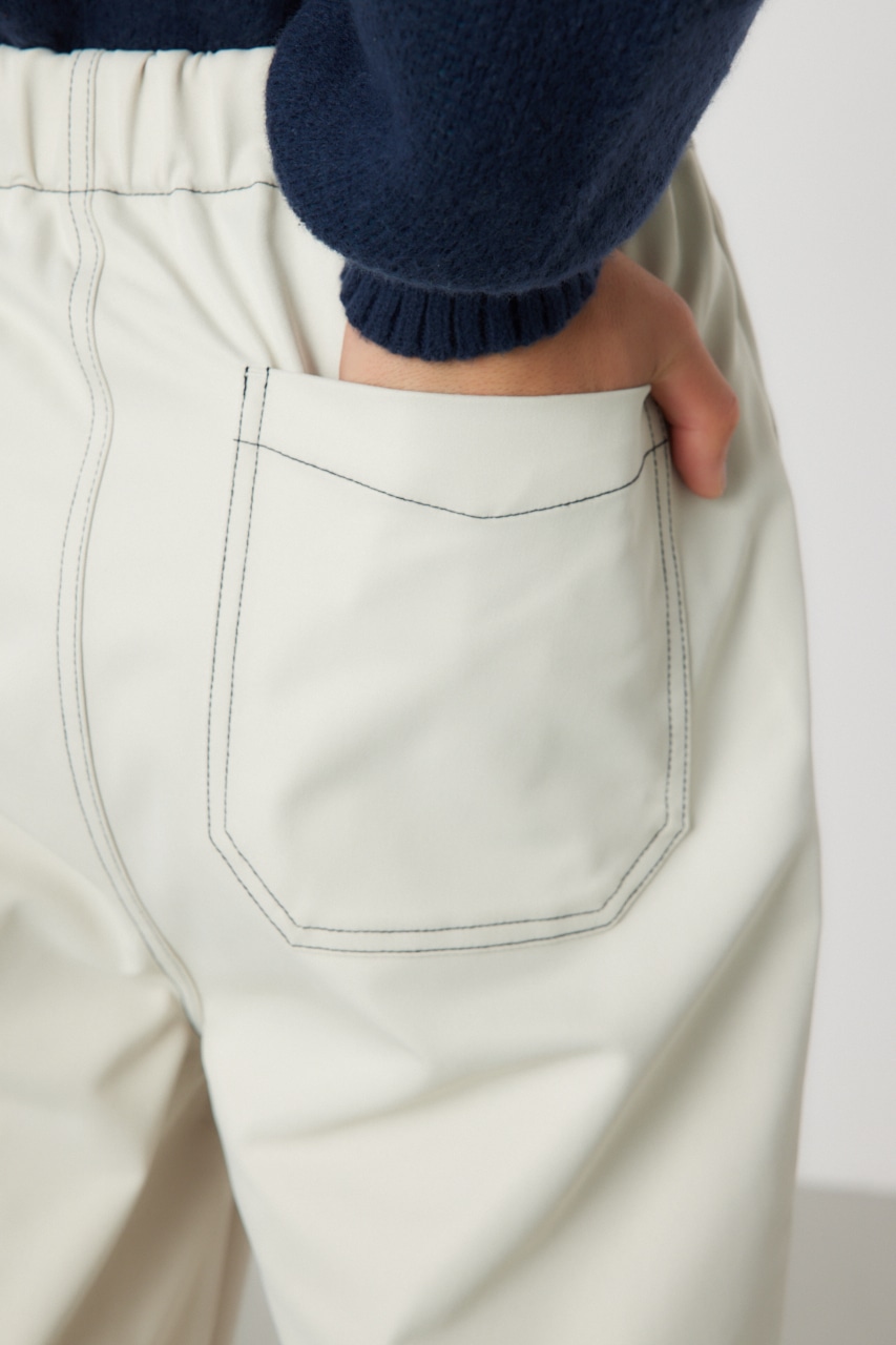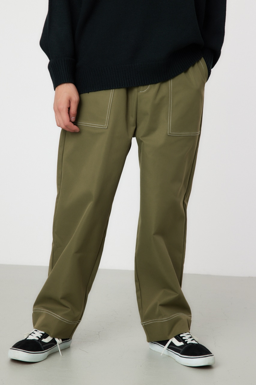 配色ステッチがポイントのベイカーパンツ。裾のタブを調整することで、2種類のシルエットを楽しめるアイテム。程良いミリタリー感で、日常使いしやすいデザインです。