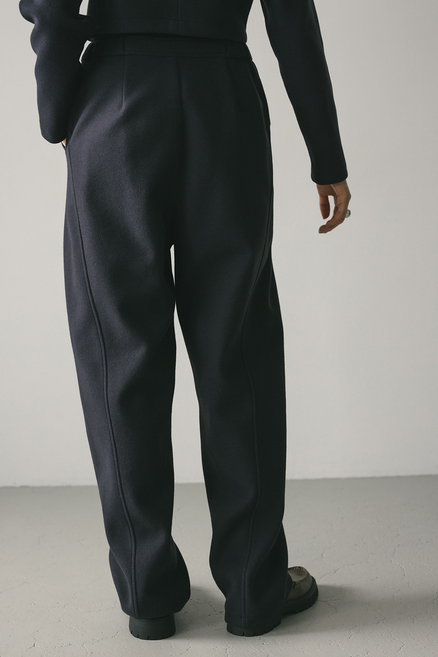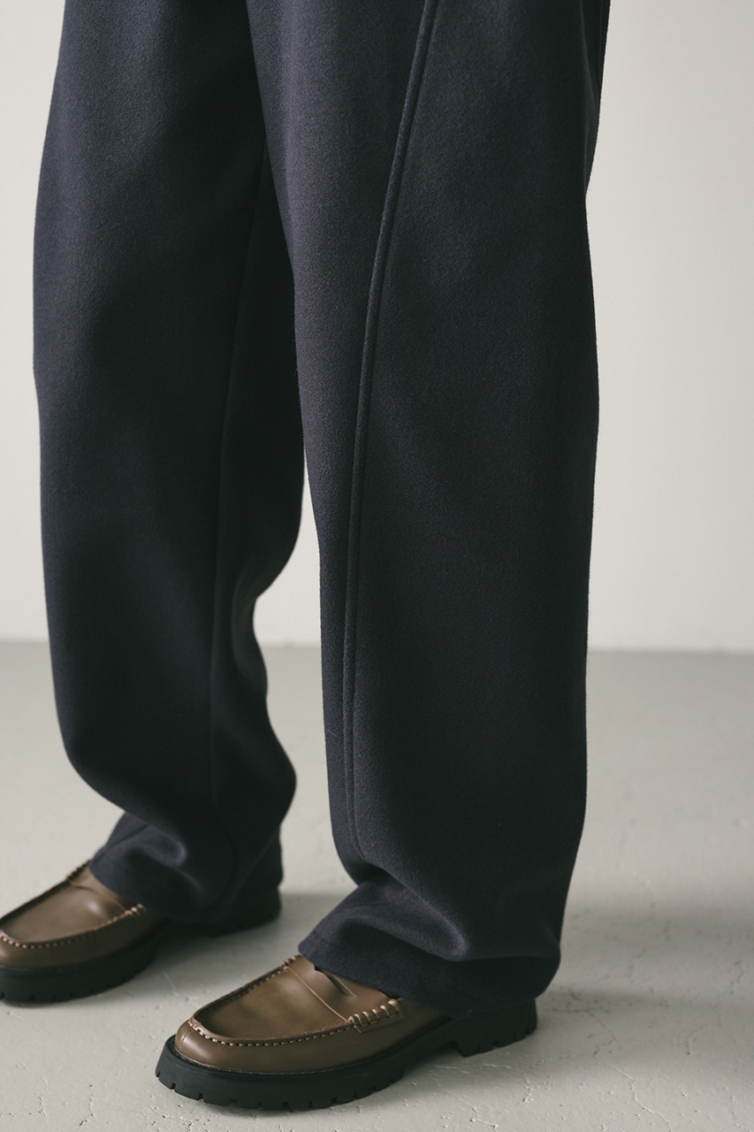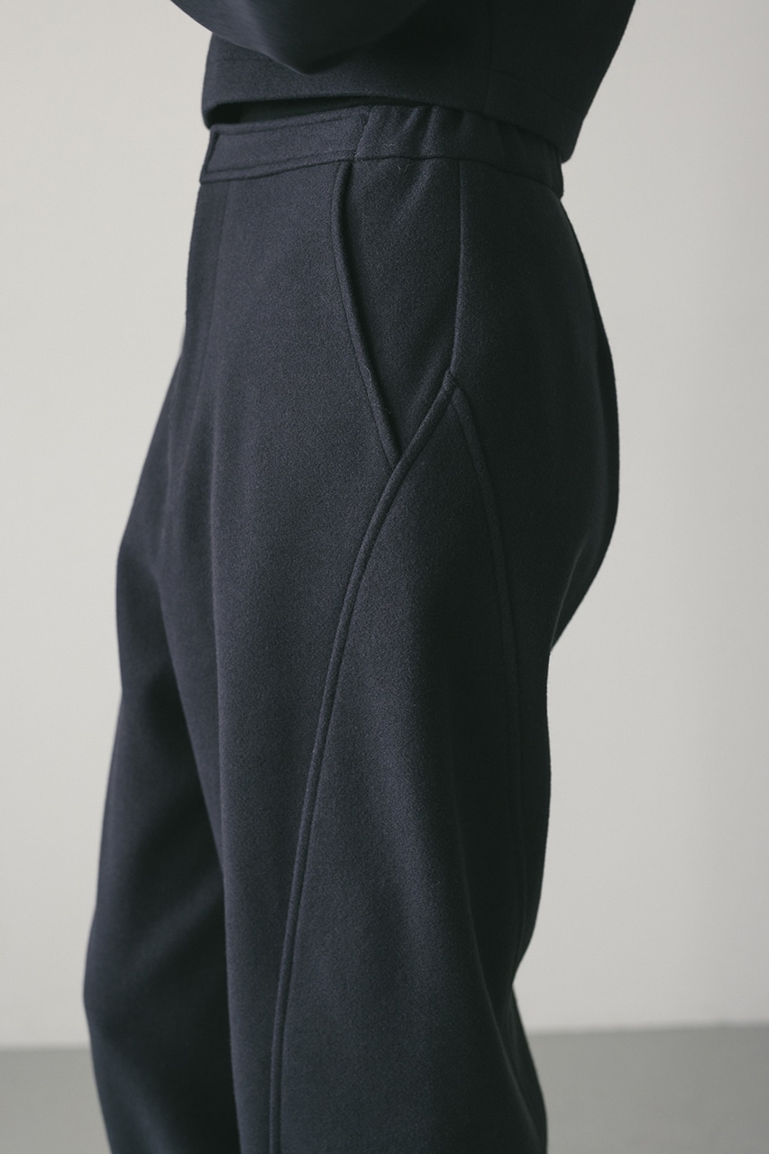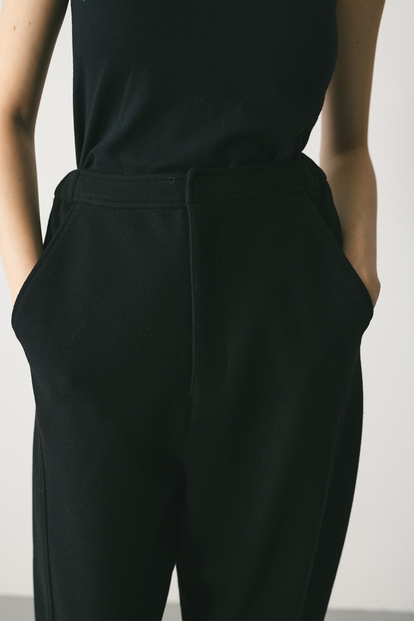 肌ざわりの良いストレッチメルトンで仕立てた美シルエットカジュアルパンツ。