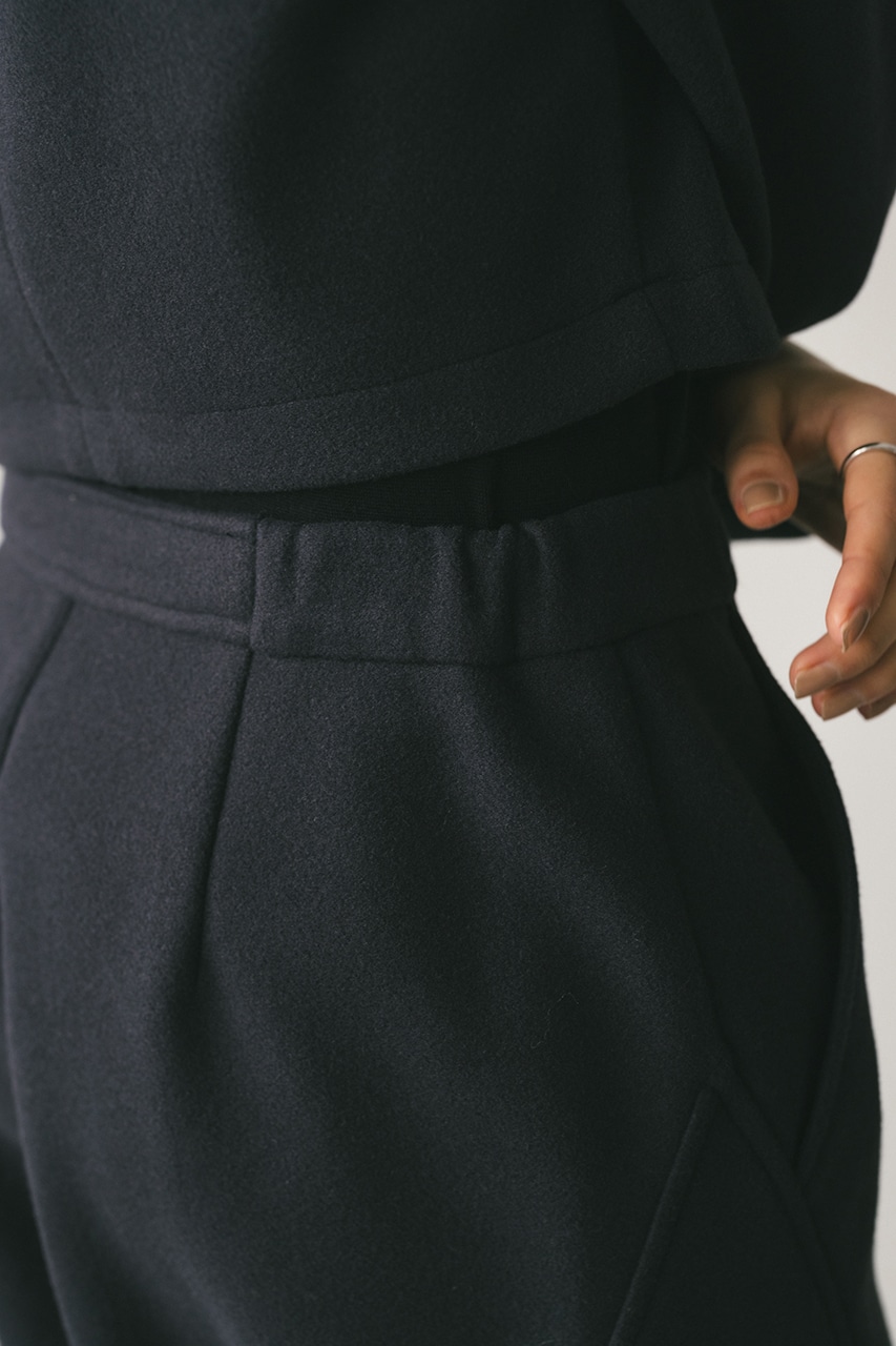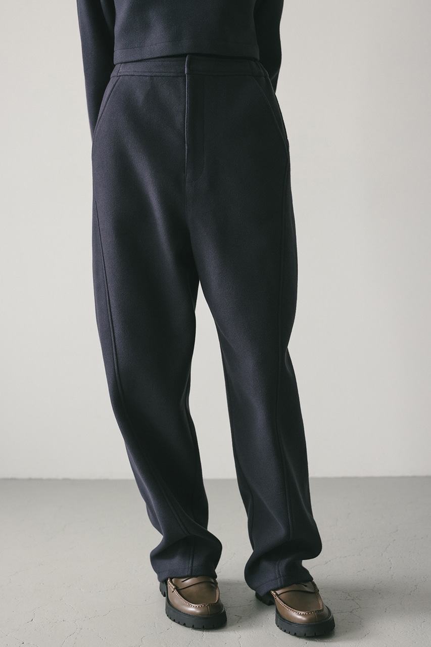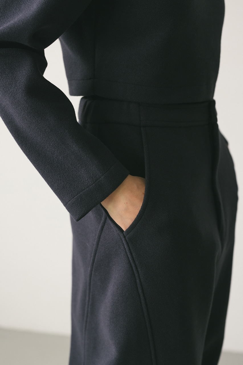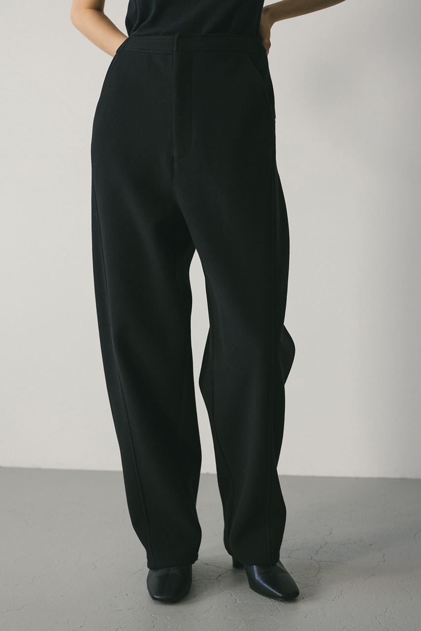 肌ざわりの良いストレッチメルトンで仕立てた美シルエットカジュアルパンツ。