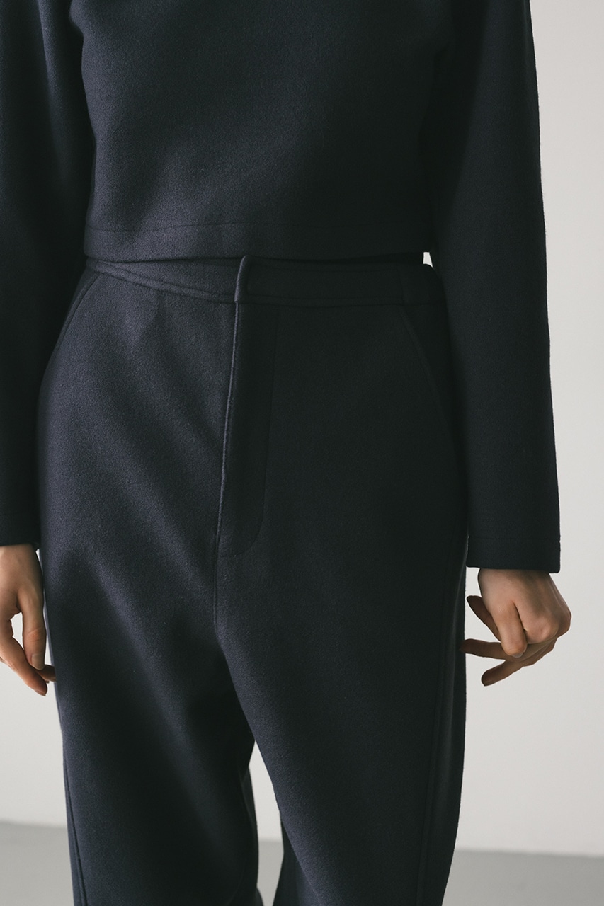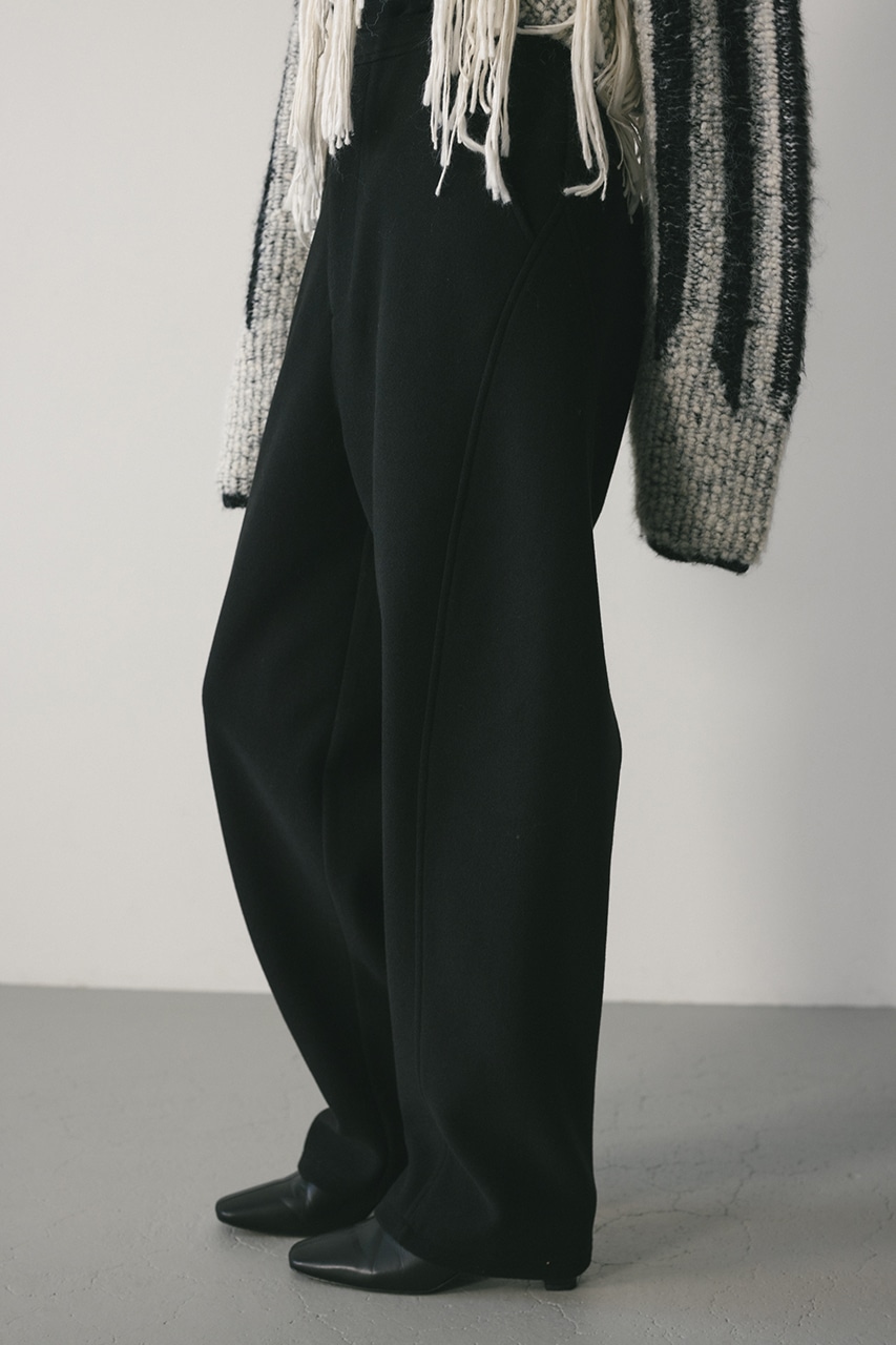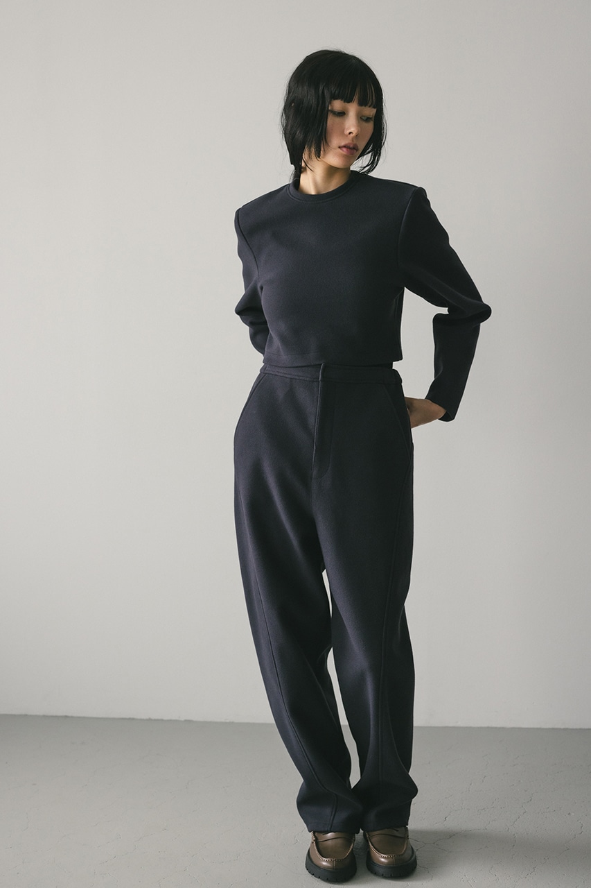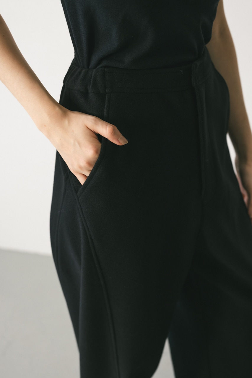 肌ざわりの良いストレッチメルトンで仕立てた美シルエットカジュアルパンツ。
