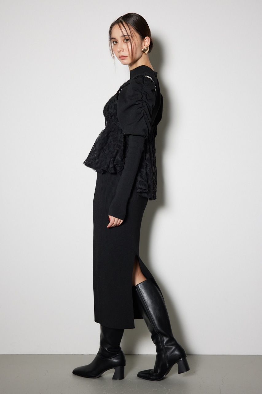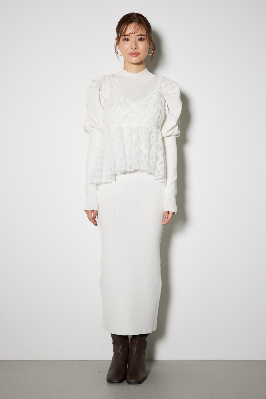 トレンドのランジェリー要素を盛り込んだレディなニットワンピースです。