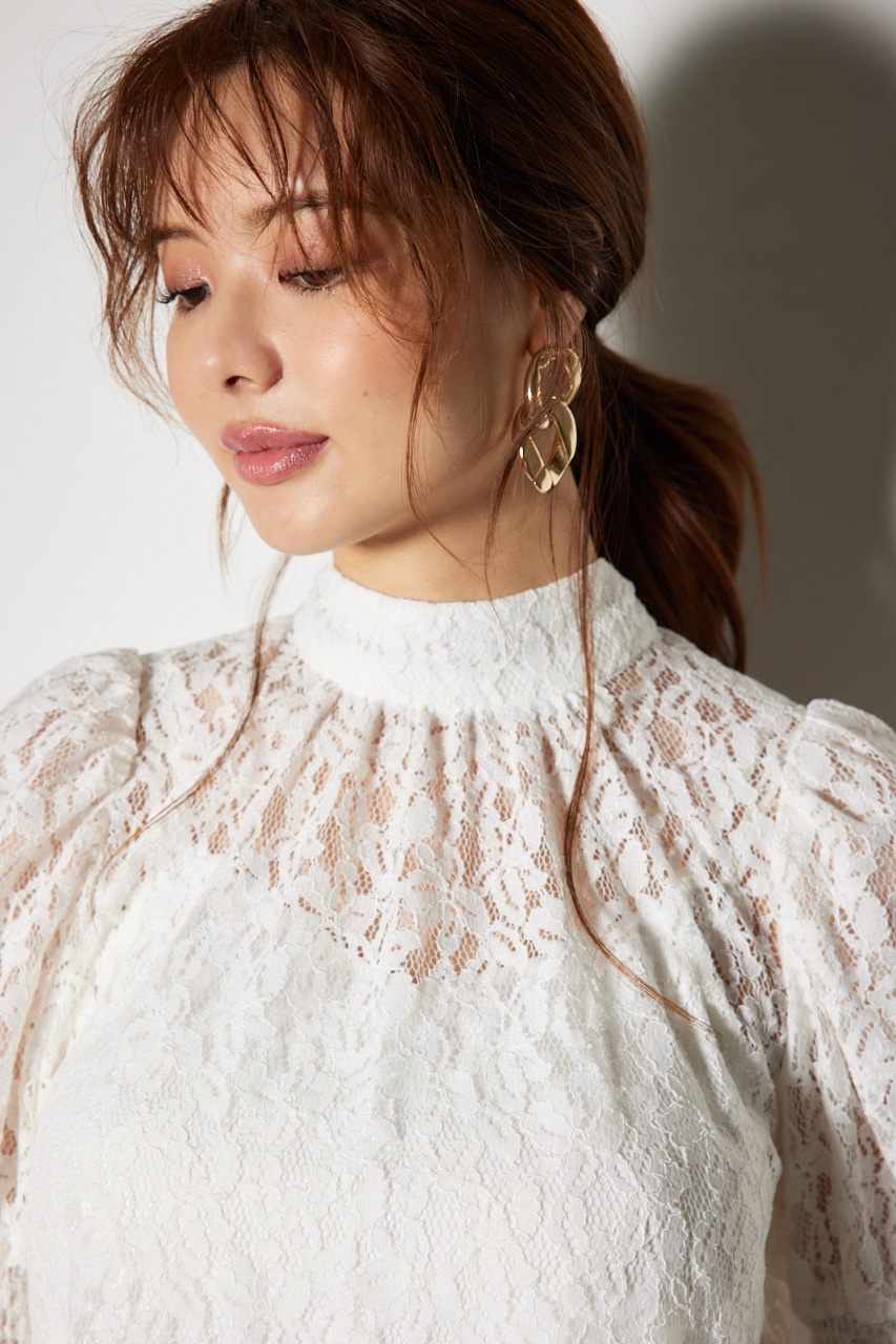【繊細なレースでどんなスタイリングも女性らしく華やかに決めることができる2WAYブラウス】
