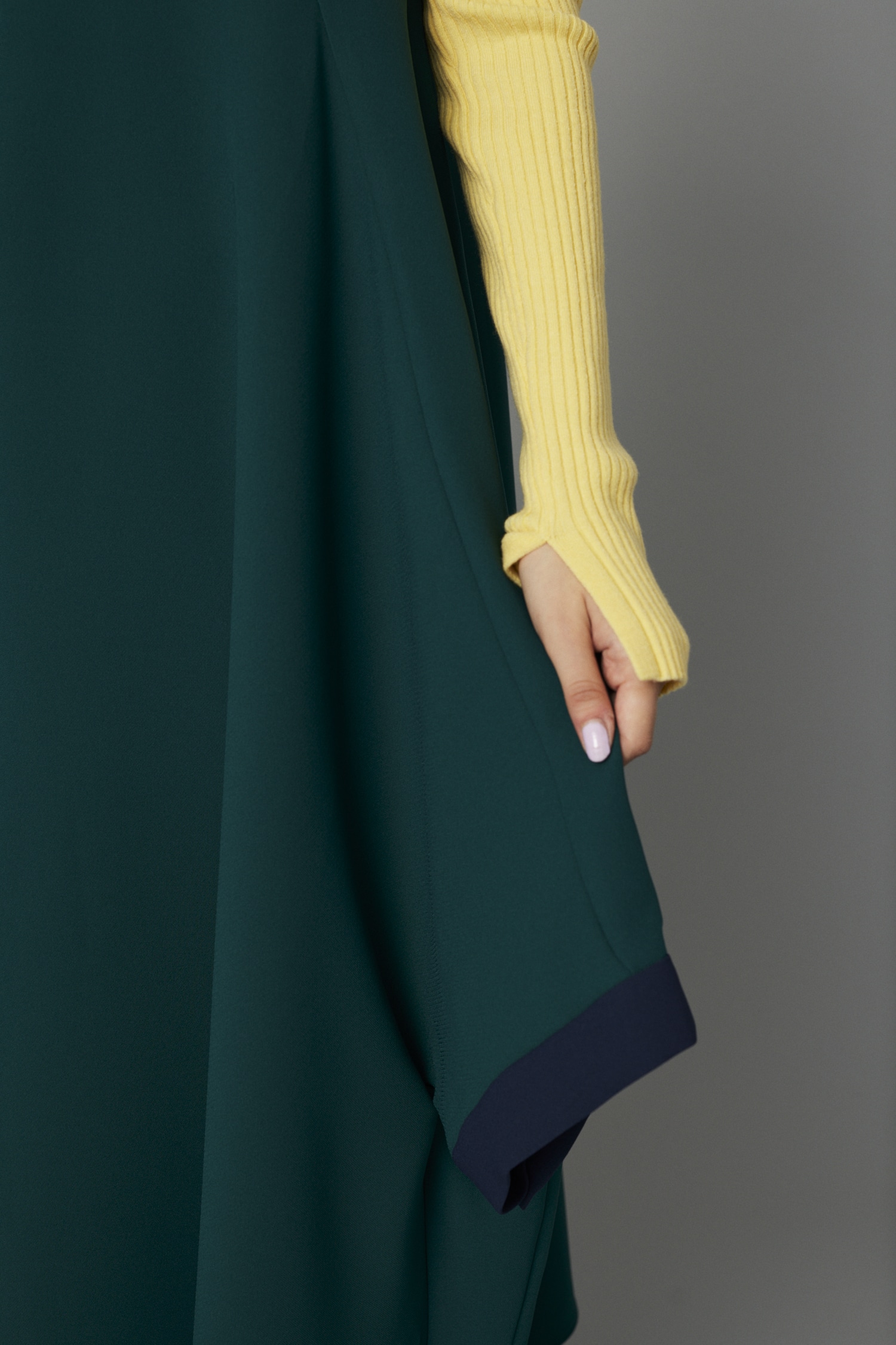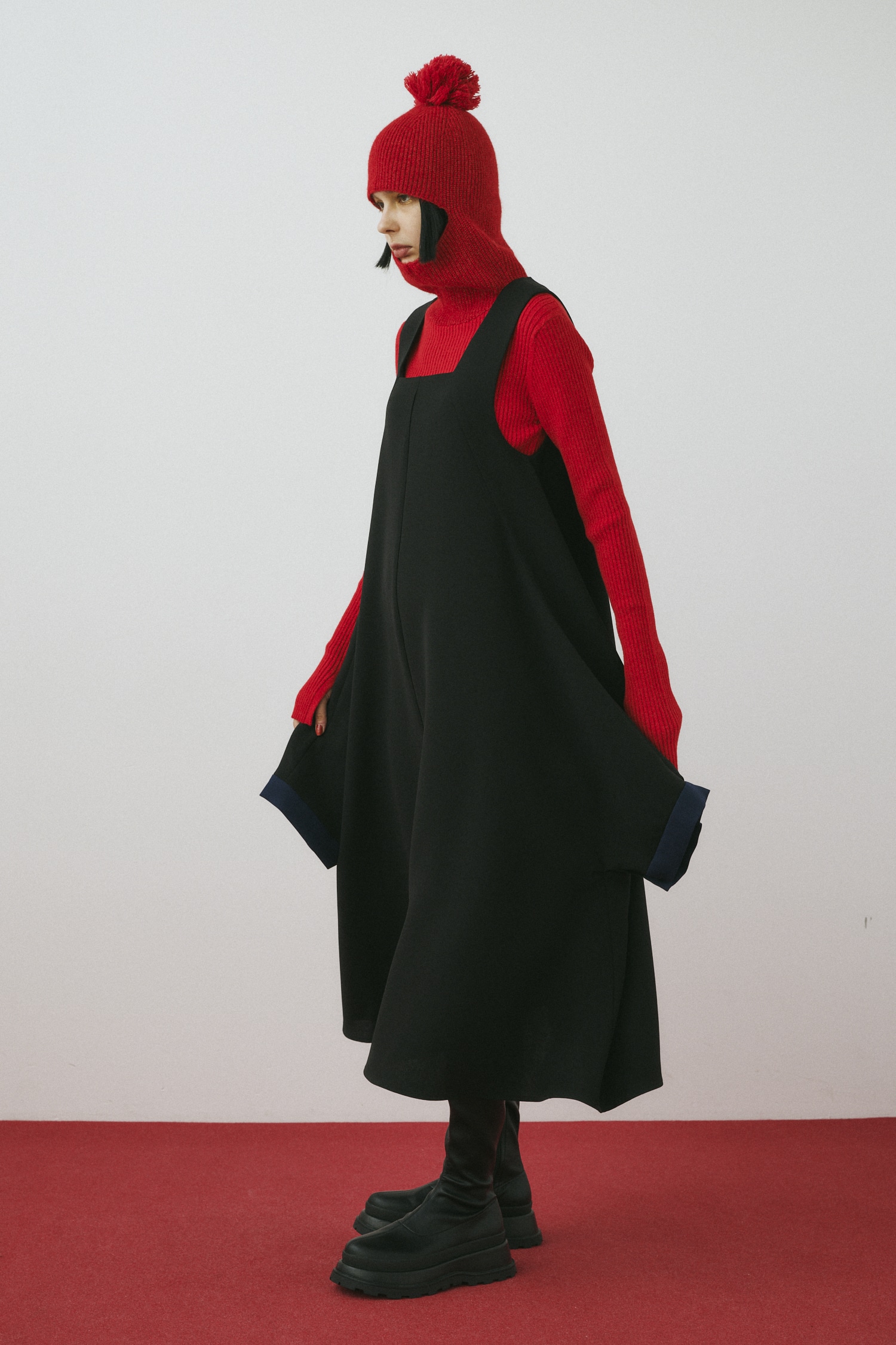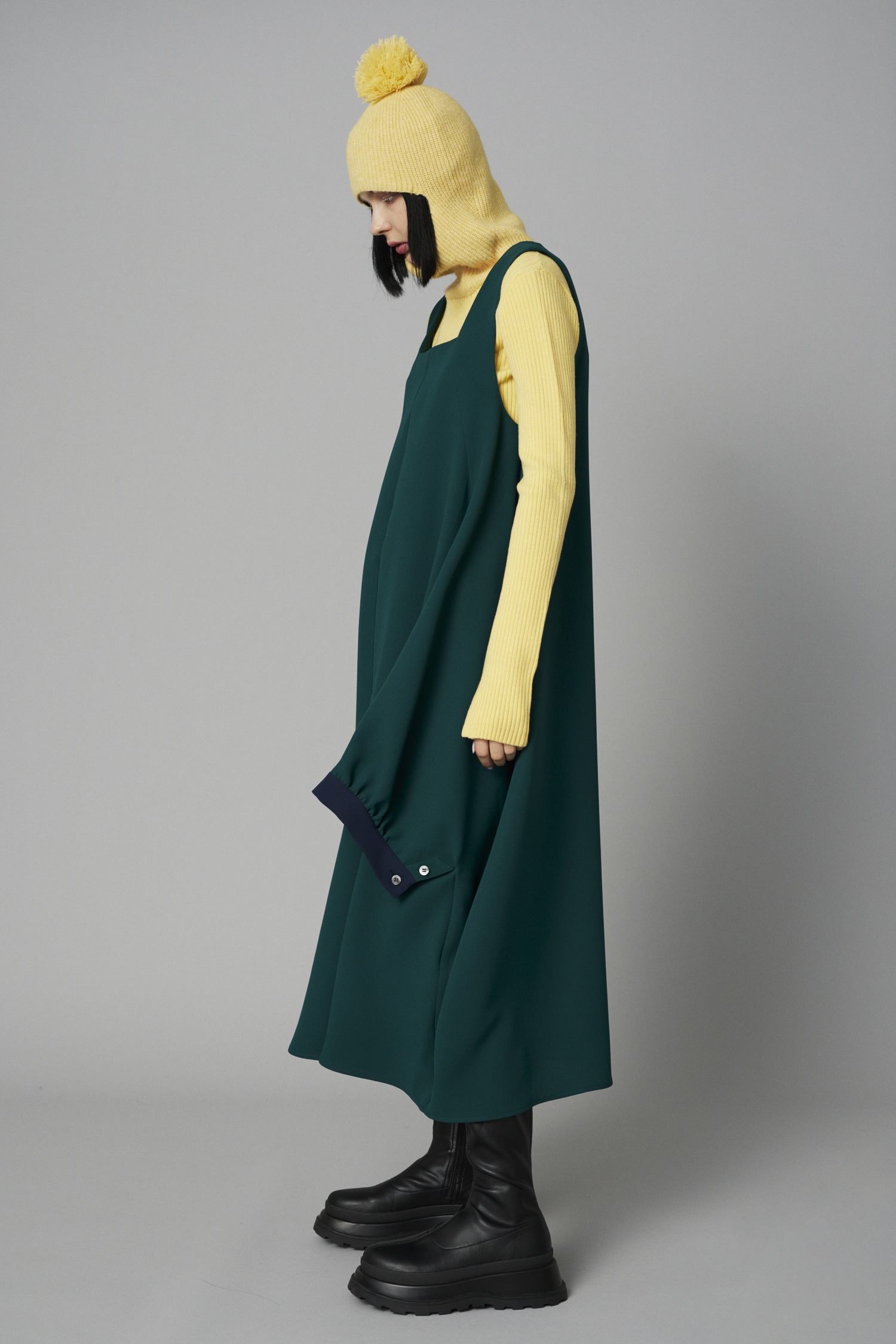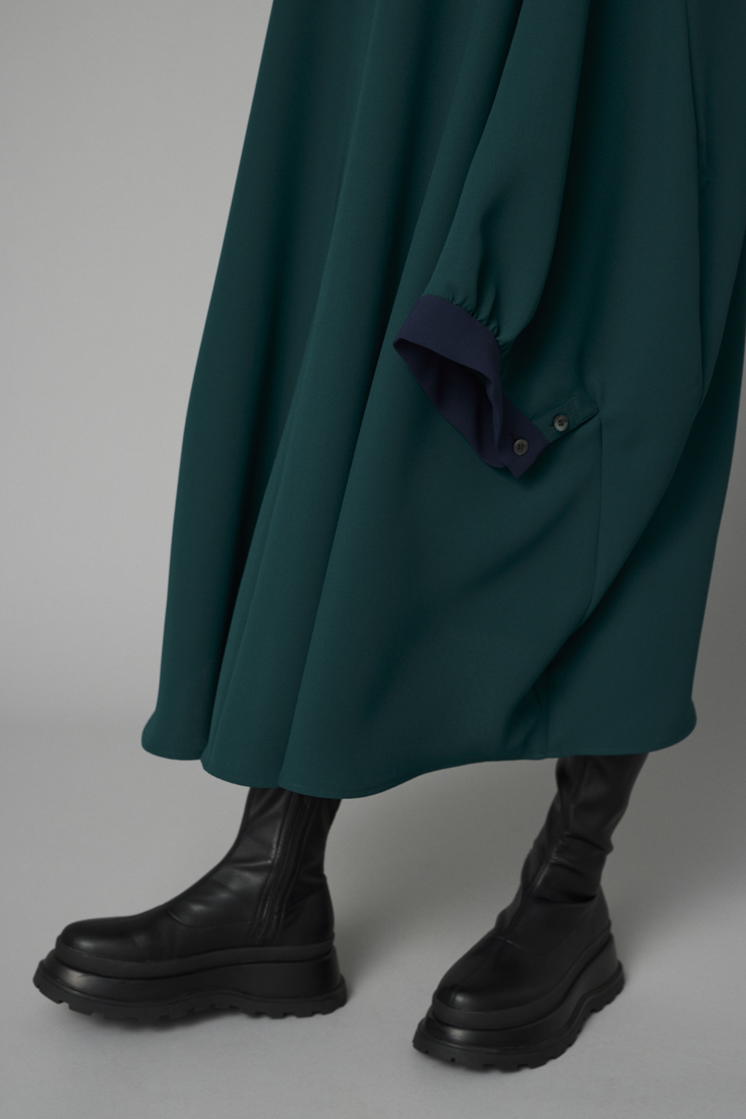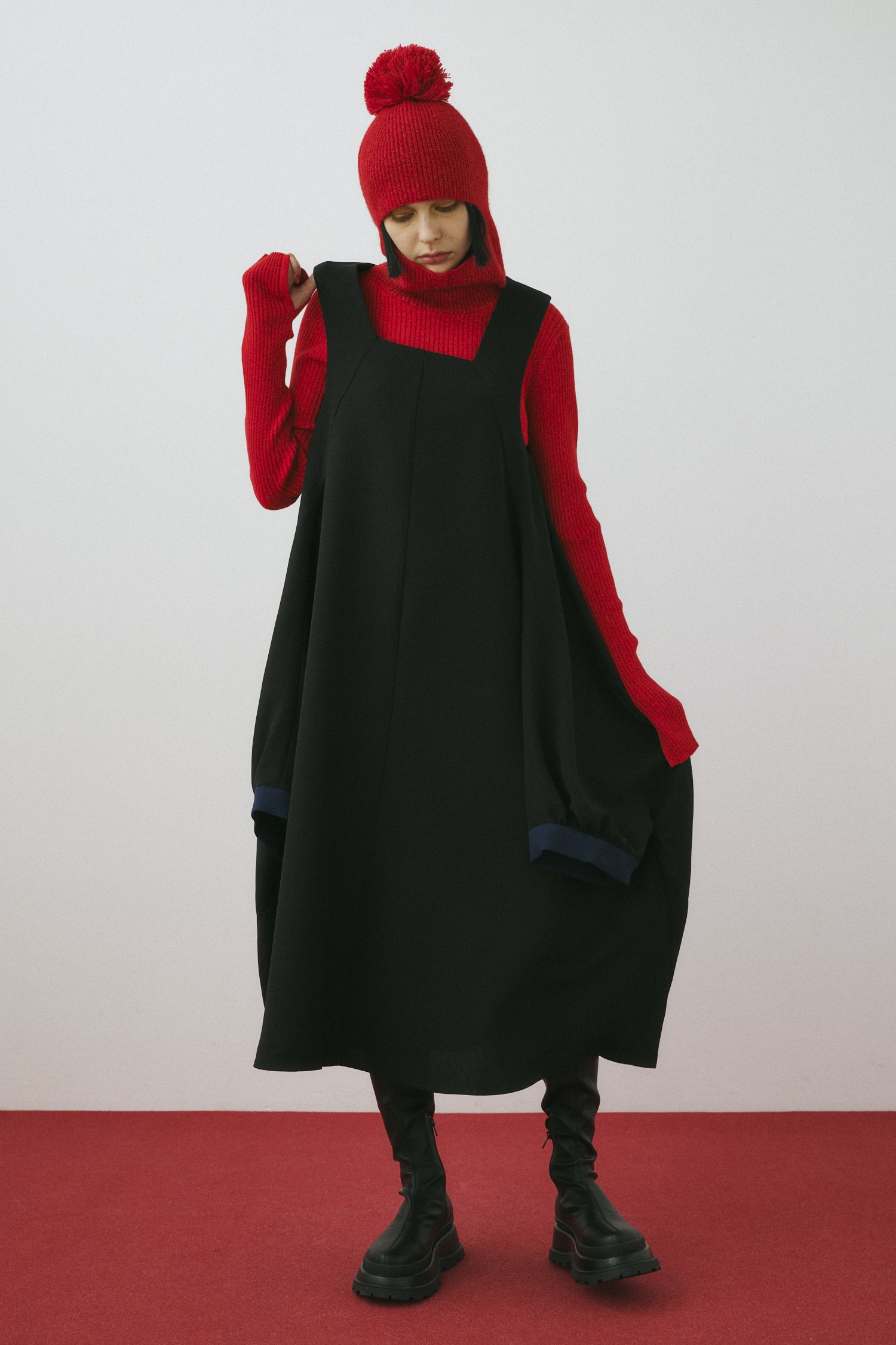コクーンシルエットで、袖がついてるデザインが特徴的なワンピース。