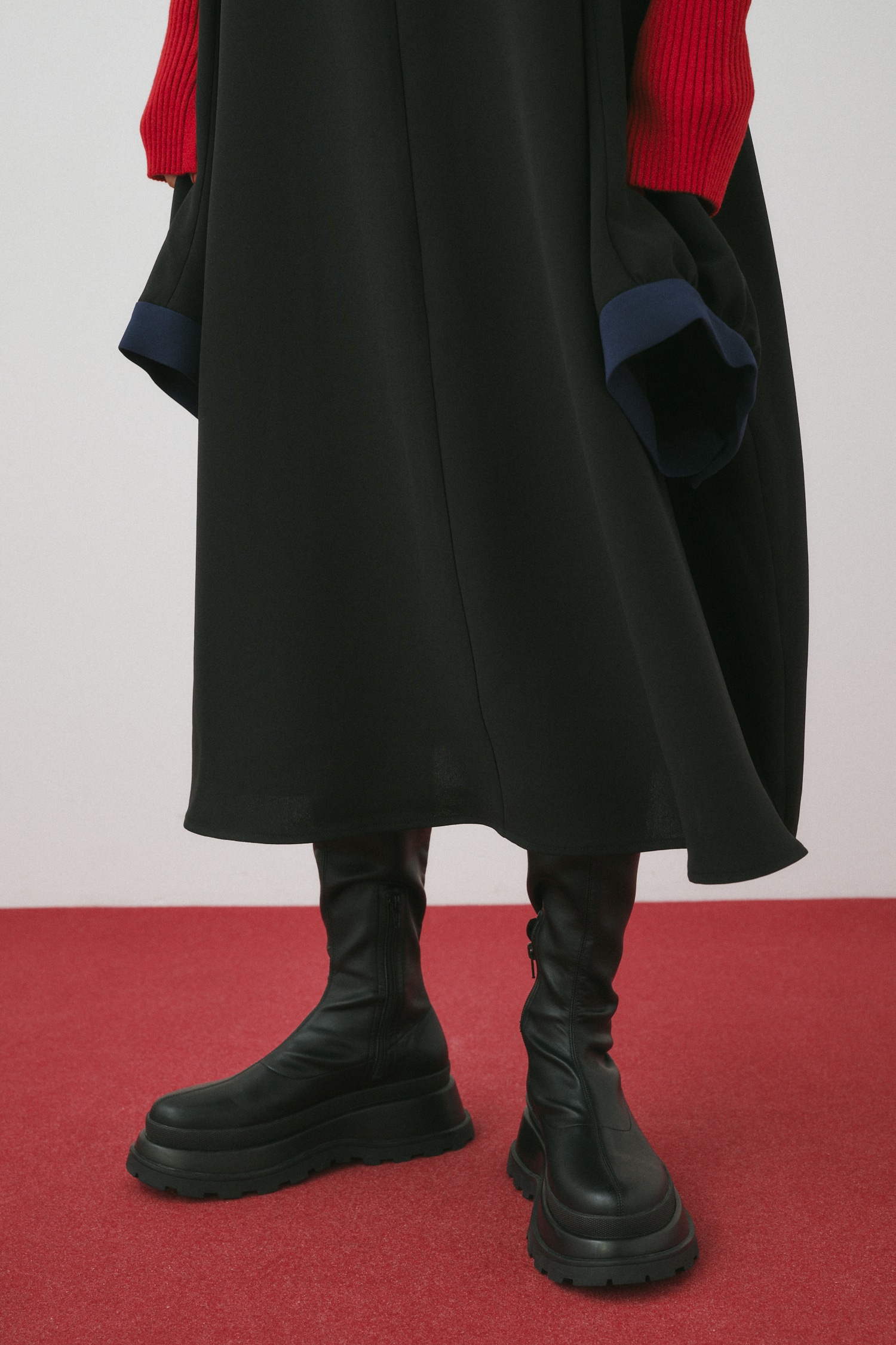 オールシーズン着用可能なアイテムで、膨らみとドレープ性を合わせ持った上品な表面感を持つ素材を使用しました。