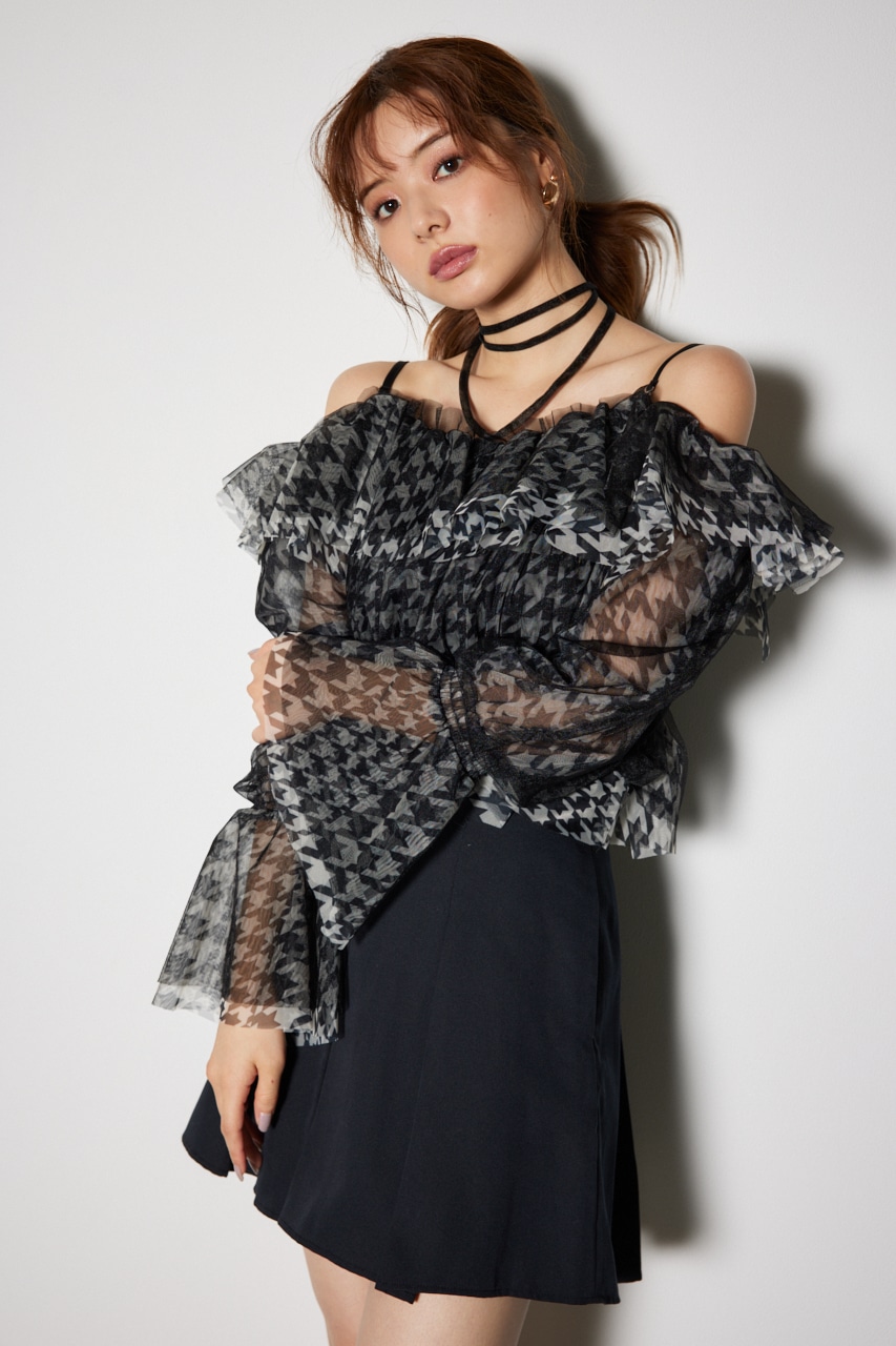 上品エレガントなチュール素材をたっぷり使用し、今っぽさを一気にアップ。