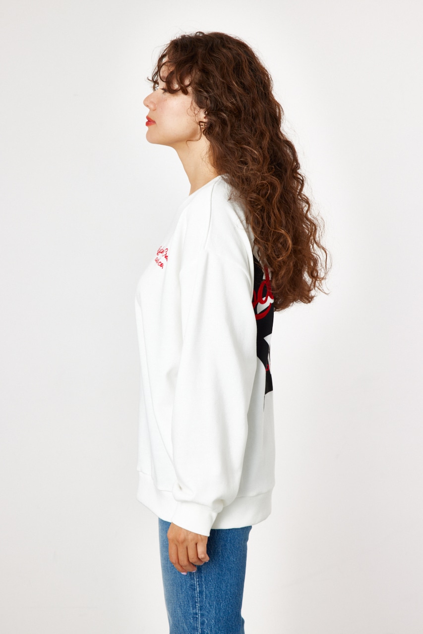 カラーもキャッチーでインパクトのあるスウェット。着やすいサイズ感のゆるめボディで、王冠プリントがポイント。