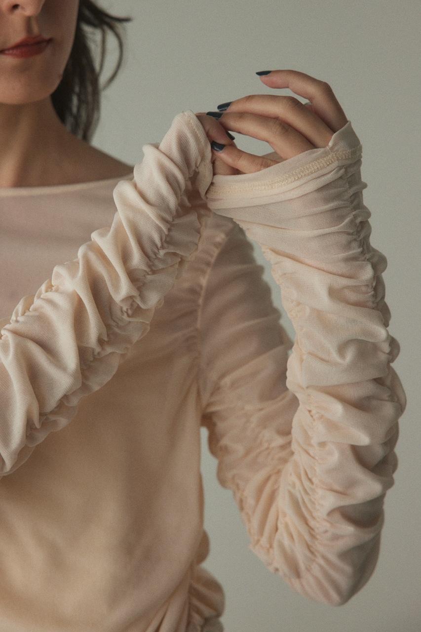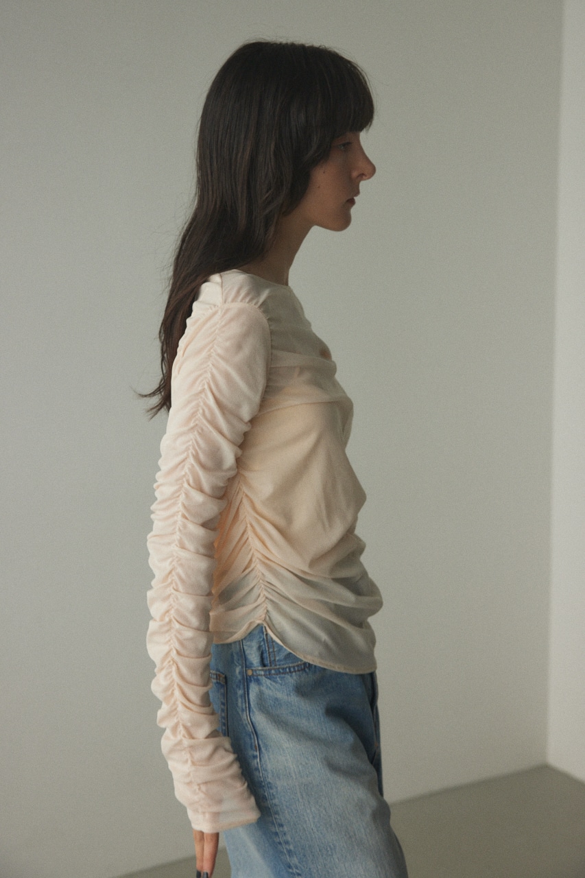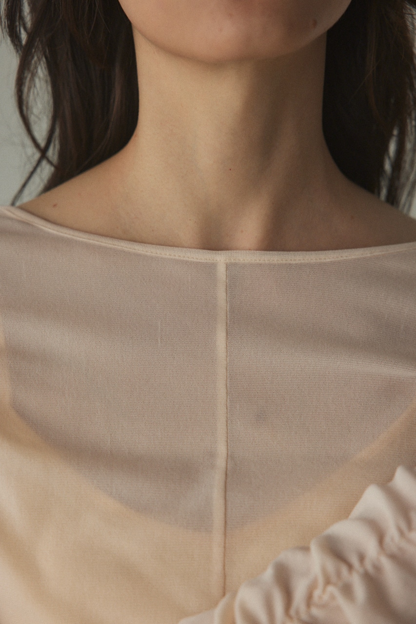 あえて透ける素材を使い、レイヤードをより楽しめるトップス。