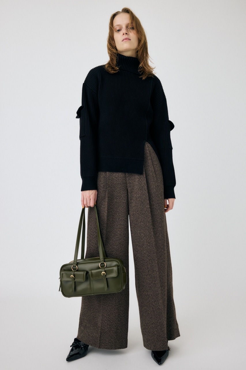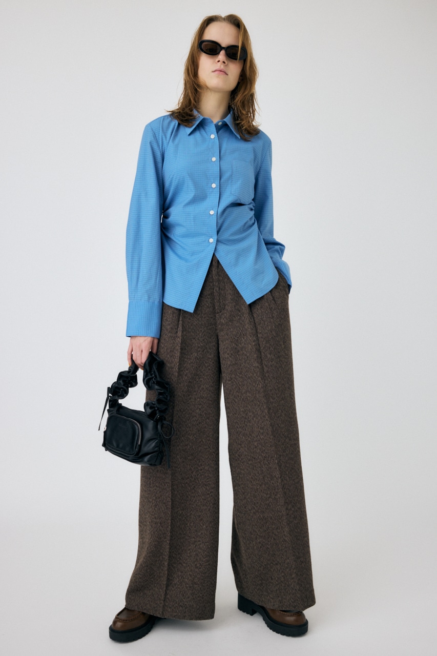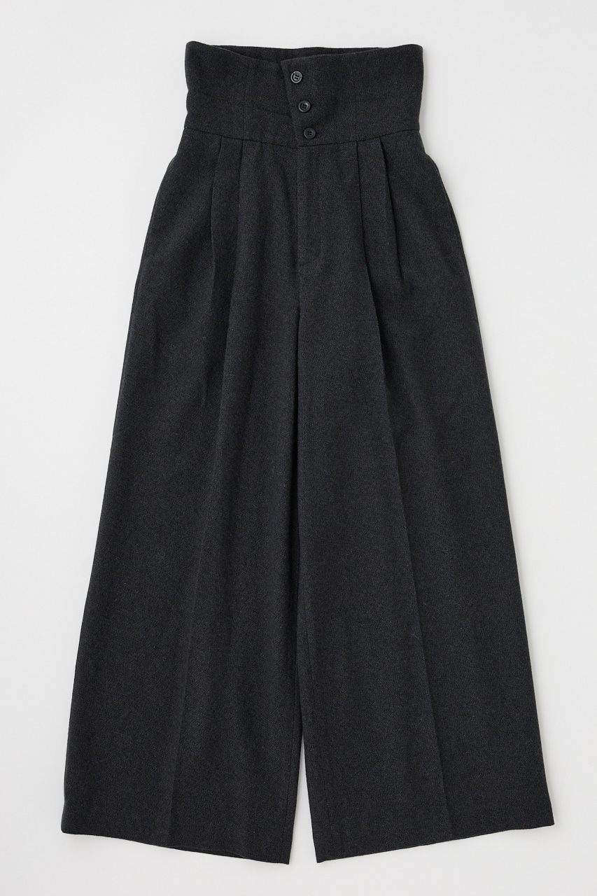 ウエストのコルセットデザインがポイントのワイドスラックス。