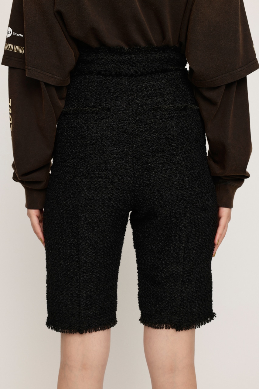 ■POINT:切りっぱなしが可愛いツイードのハーフパンツ。表面感があり、コーディネートが映える一枚。程よい丈感もポイントです。