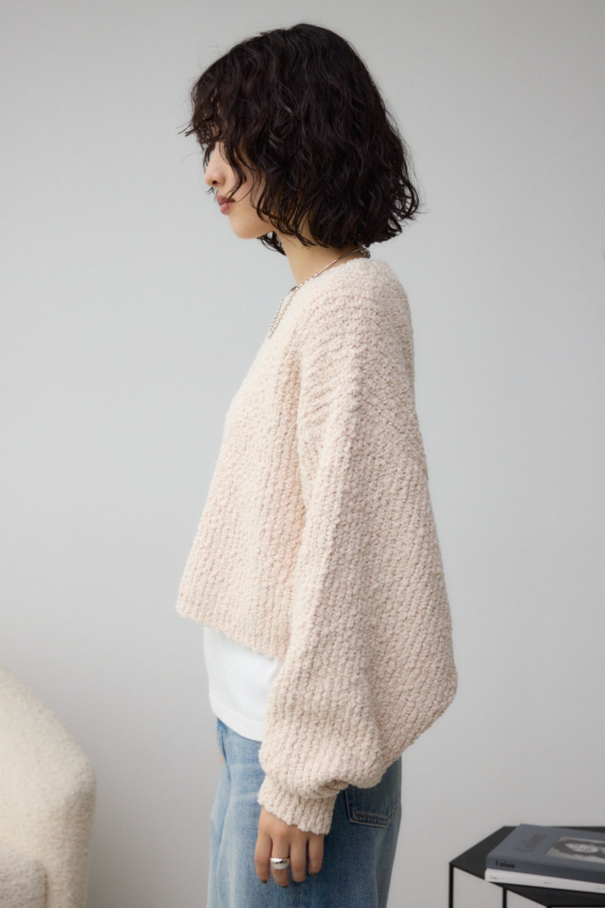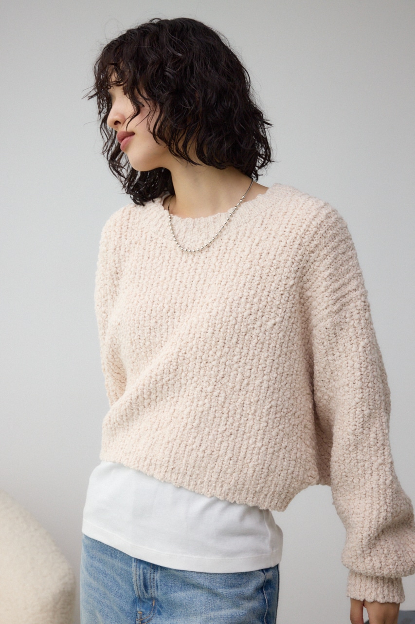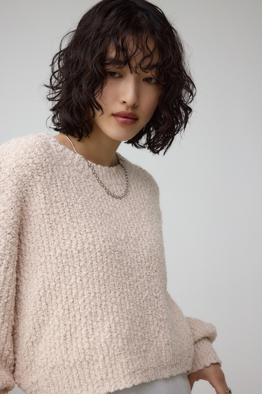 しなやかなモール糸の凹凸感がポイントのブークレニットです。