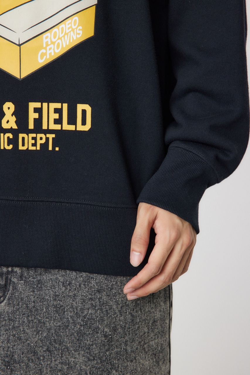 フロントのキャッチーなグラフィックがポイントの裏毛スウェット。RODEOのランニングシューズをモチーフに、企業のノベルティのようなデザインに。どこかシュールでありながら、古着っぽいイメージに仕上げたアイテムです。