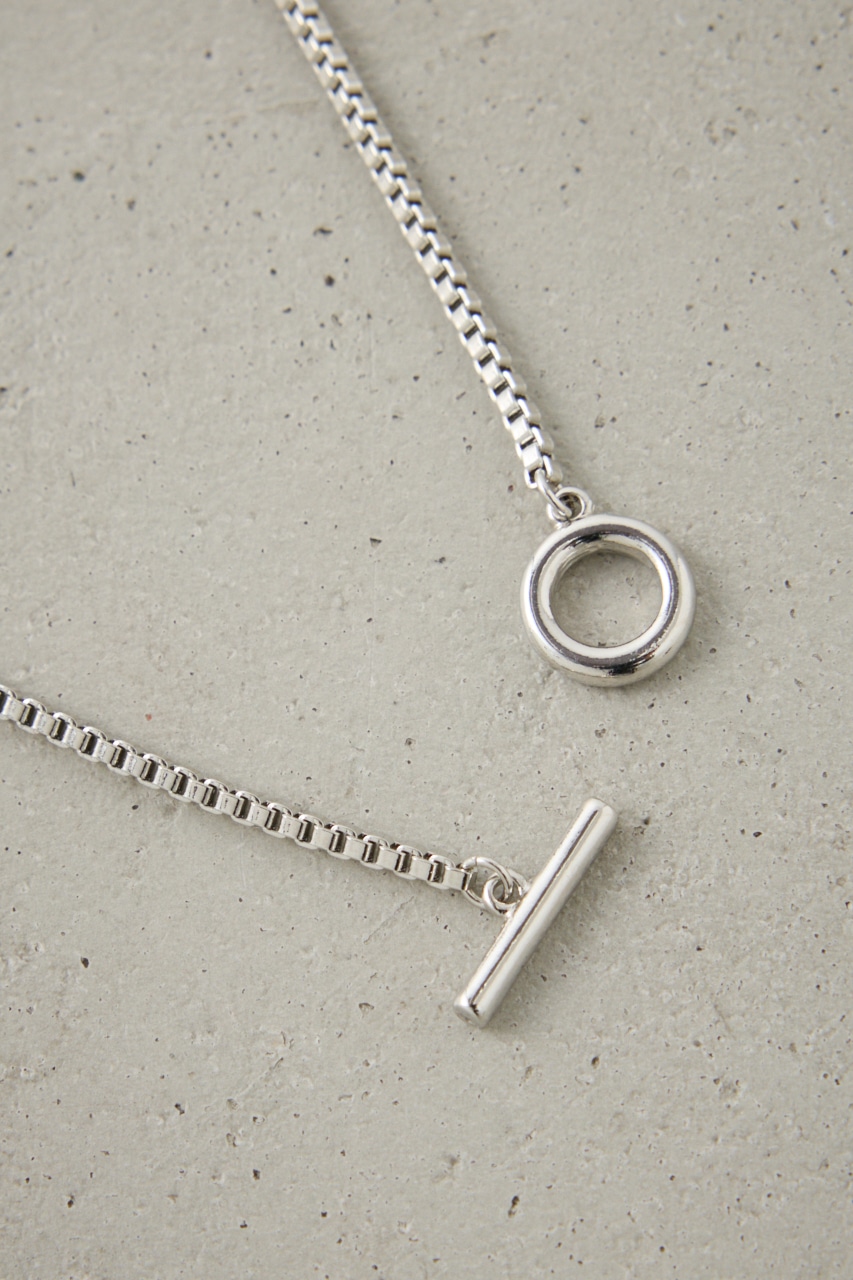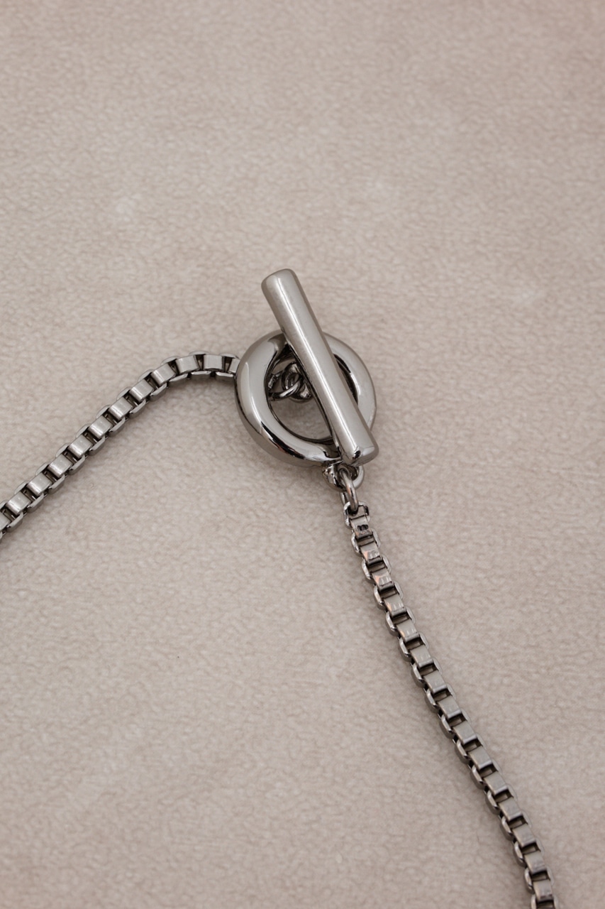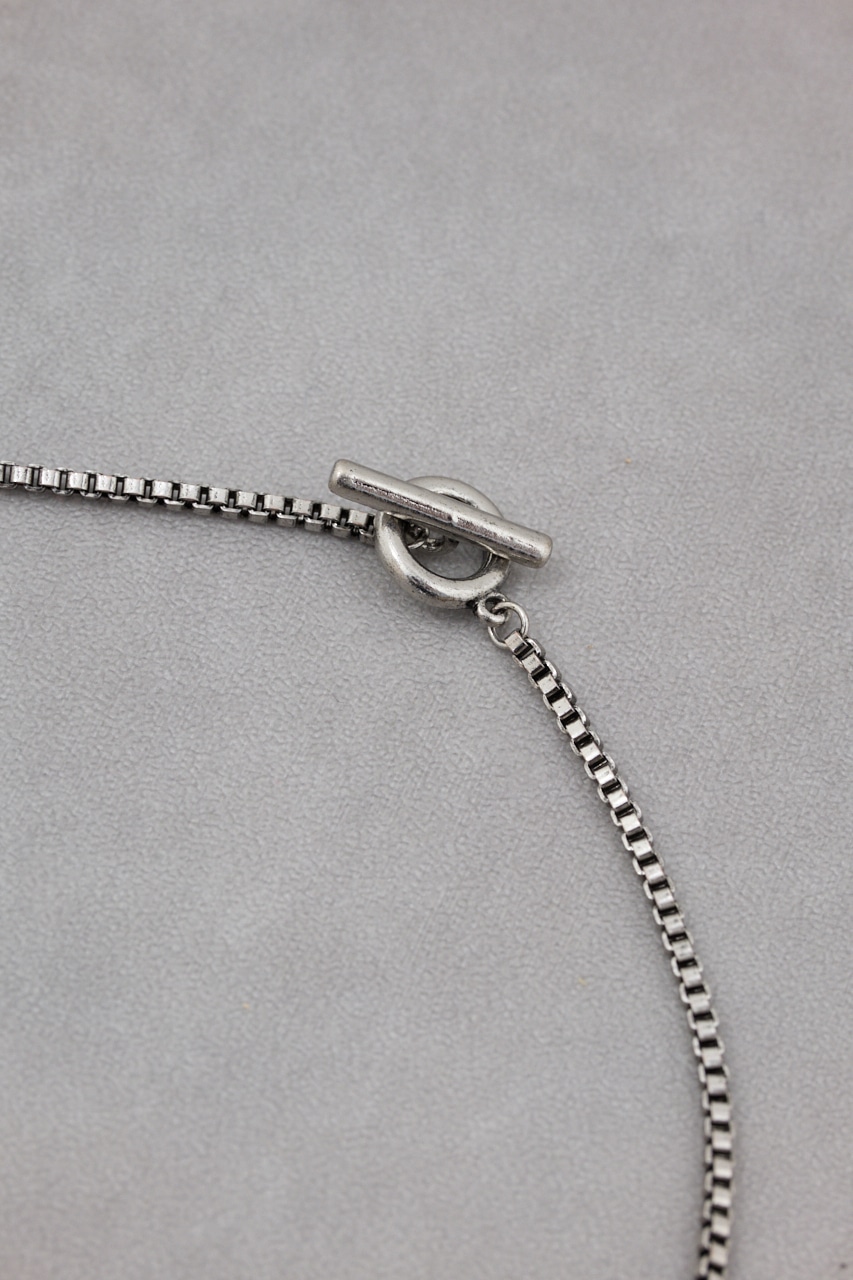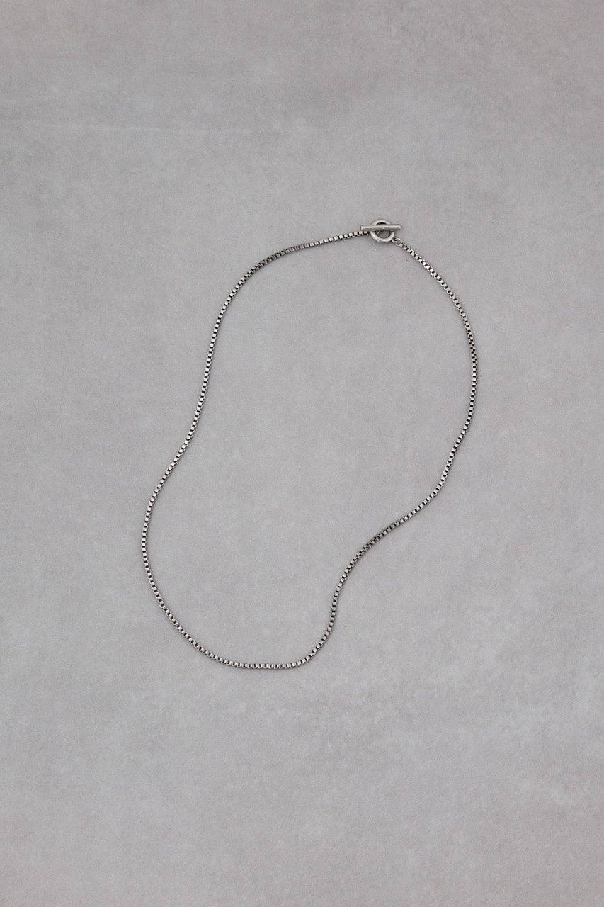 四角いパーツを交互に組み合わせて仕上げたアイテム。細めなデザインなので、首元をすっきり見せてくれます。