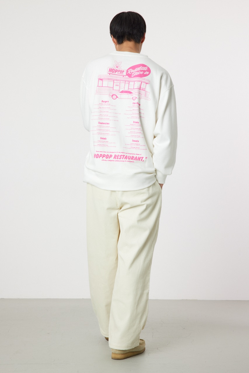 架空のダイナーにちなんだグラフィックデザインがポイントの裏毛クルースウェット。カラーによってデザインが異なるアソートで展開。食事、外観、マスコットと異なるデザインで、アメリカンに表現したアイテムです。