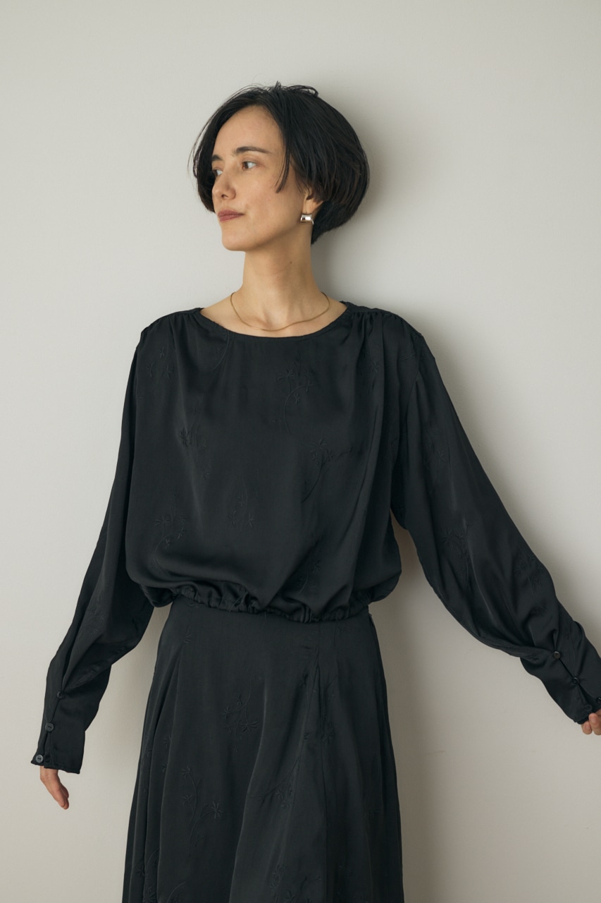 肌馴染みが良く、落ち感のあるやわらかいサテン地のブラウス。