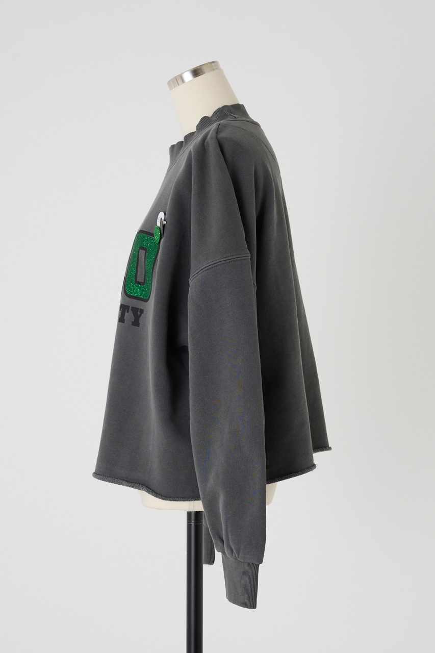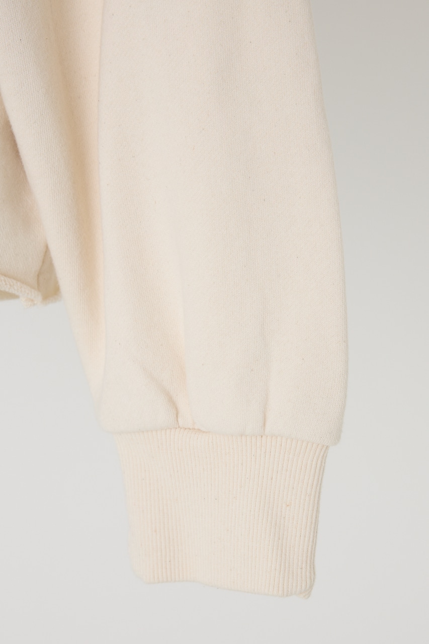スウェットの裾はカットオフデザインで抜け感をプラス。