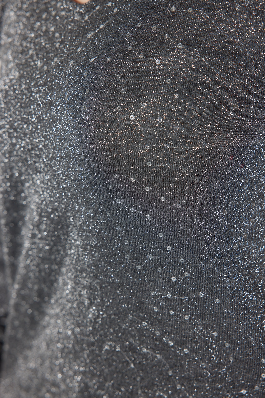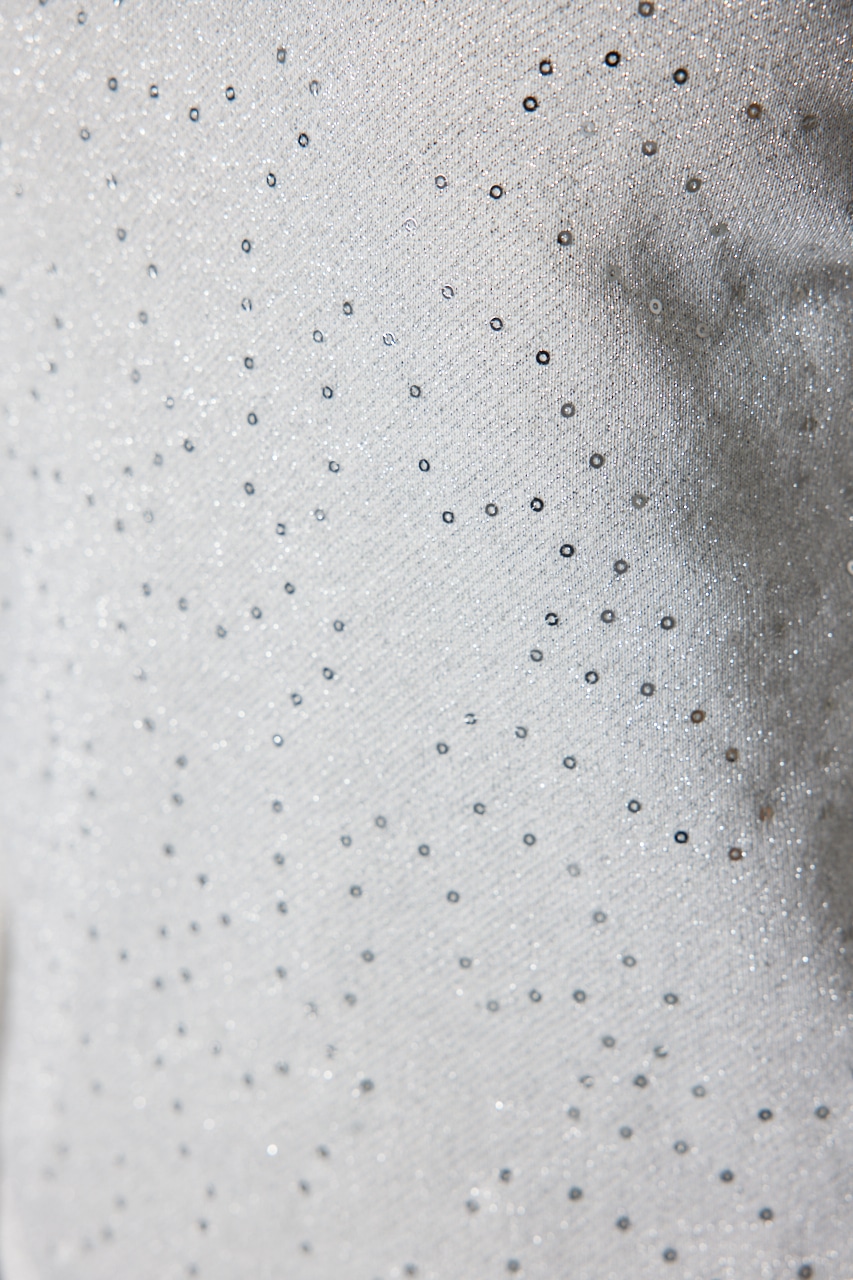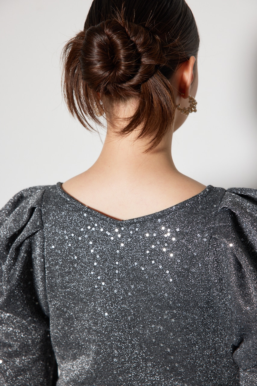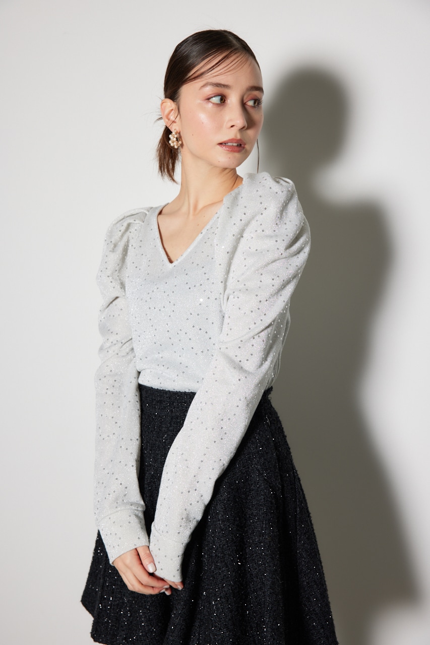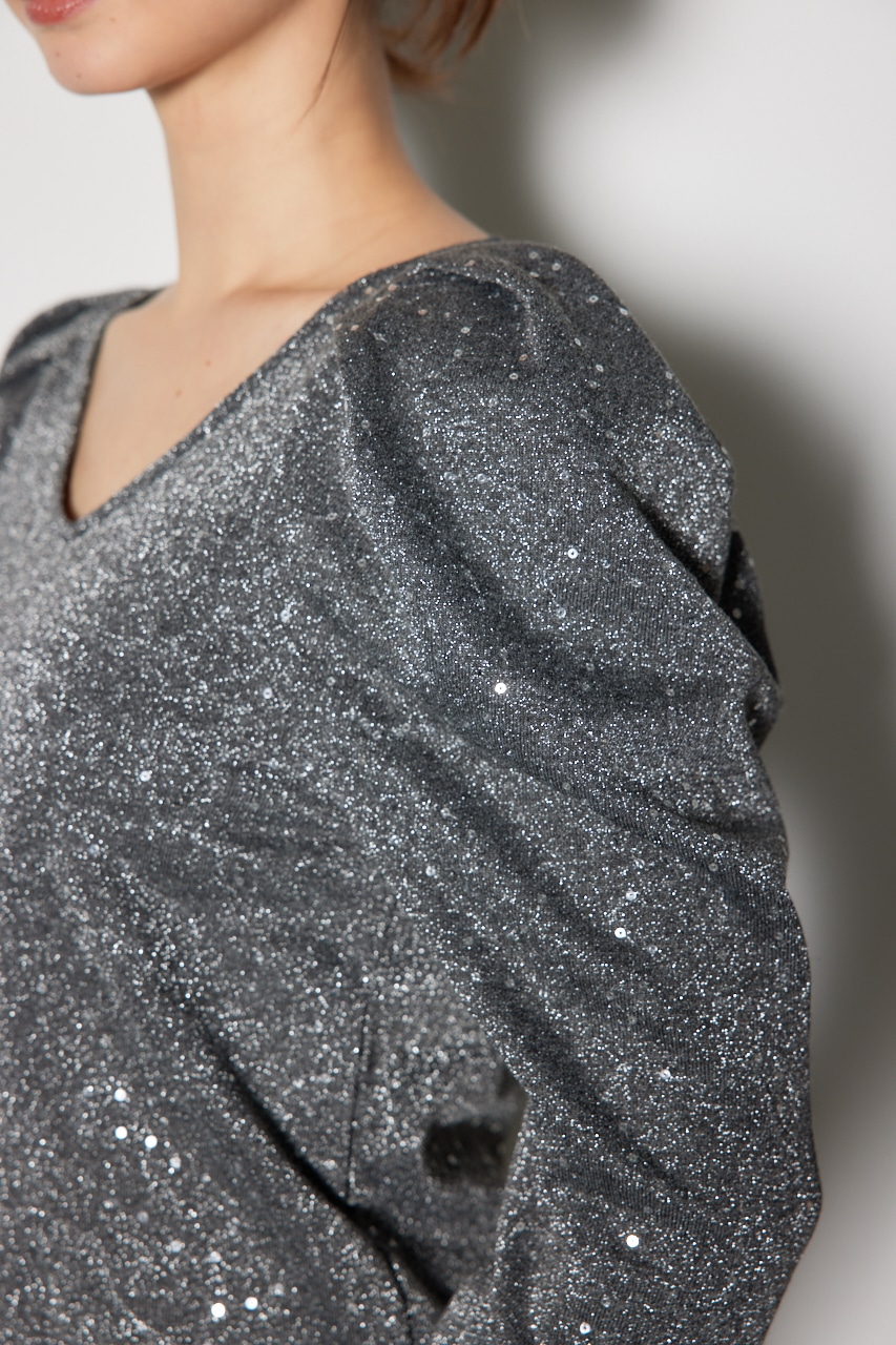 スパンコールが縫われている生地を採用し作成した華やかなカットトップス。