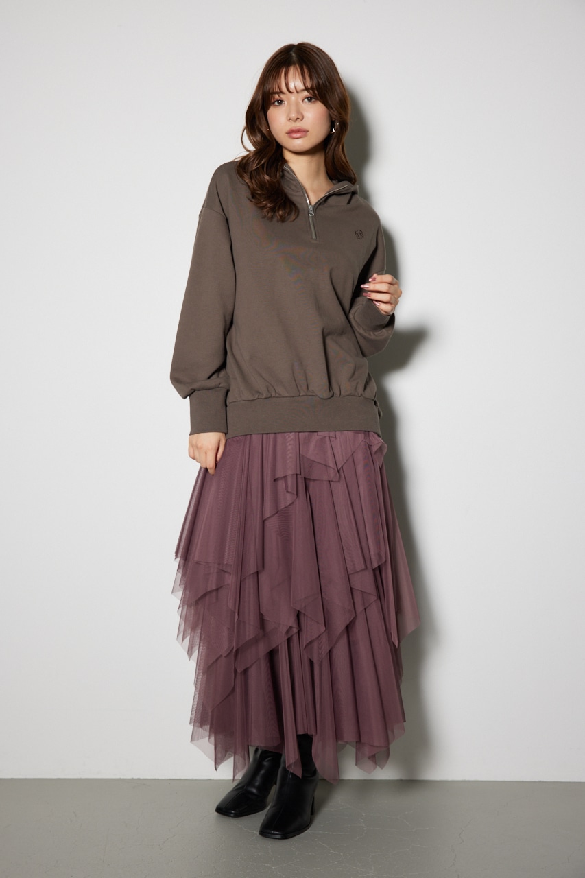 ハーフジップの開け具合は調節でき、抜け感のあるスタイリングもできるようにしました。