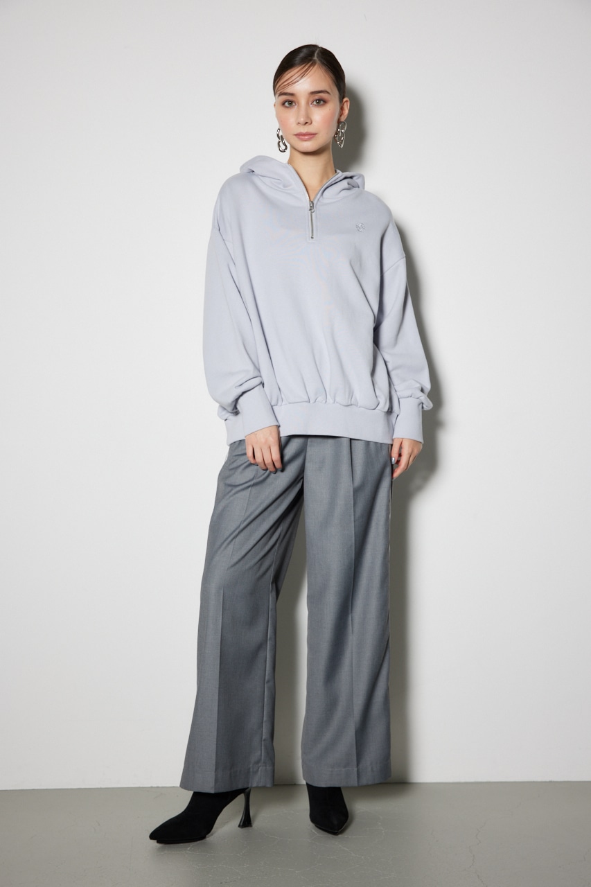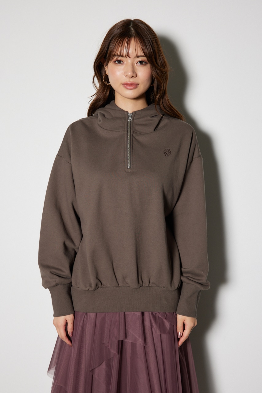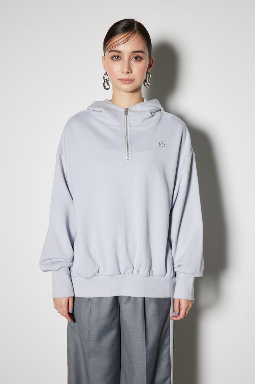 ハーフジップを取り入れた今年らしいフーディーでカジュアルな印象ながら、余計なデザインを入れずに品よく