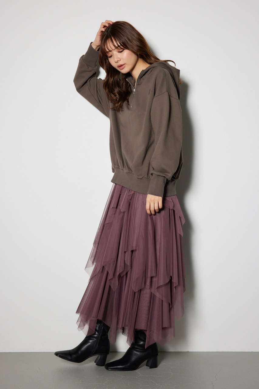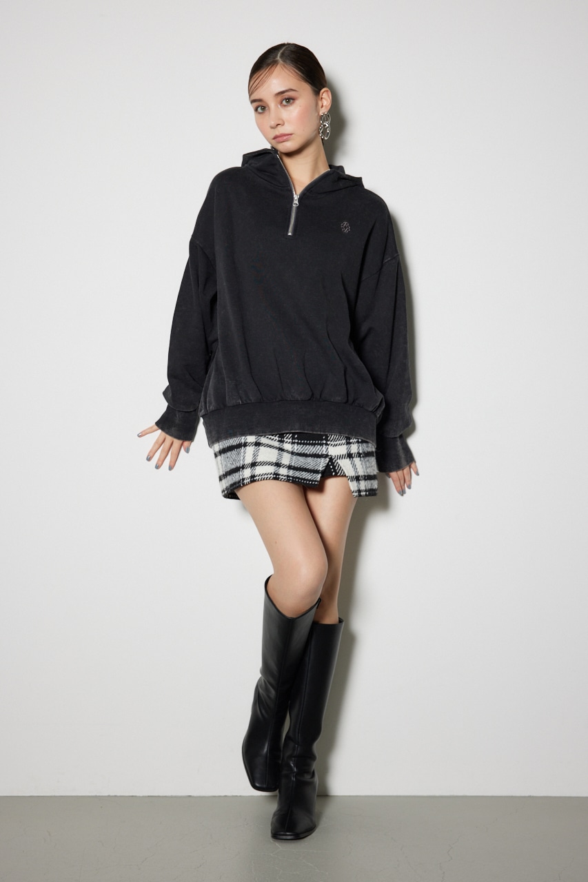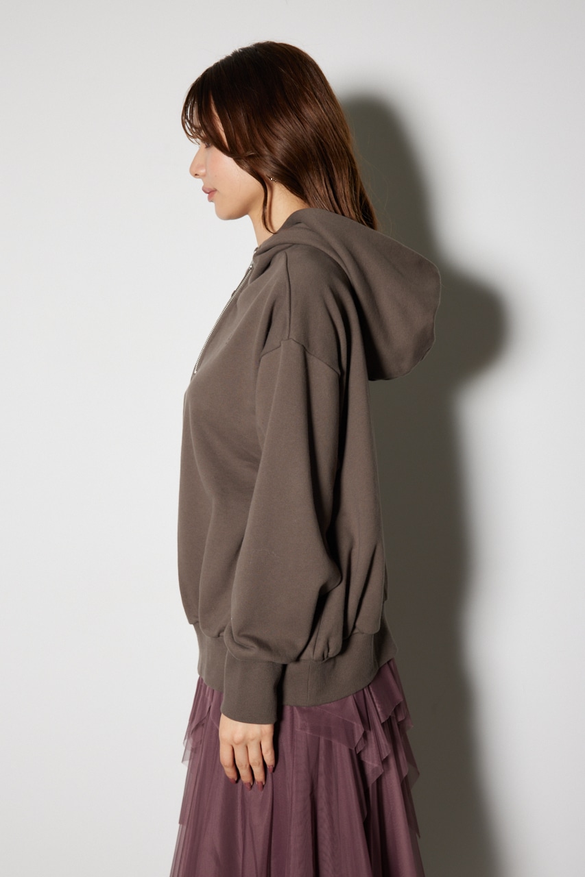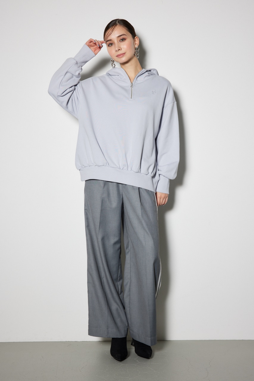 ハーフジップを取り入れた今年らしいフーディーでカジュアルな印象ながら、余計なデザインを入れずに品よく