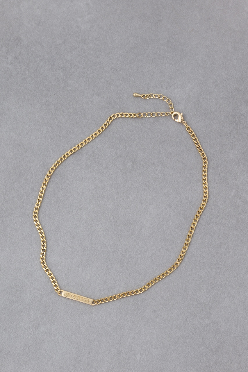 さりげなく刻印された筆記体のブランドロゴが特別感のあるネックレス。