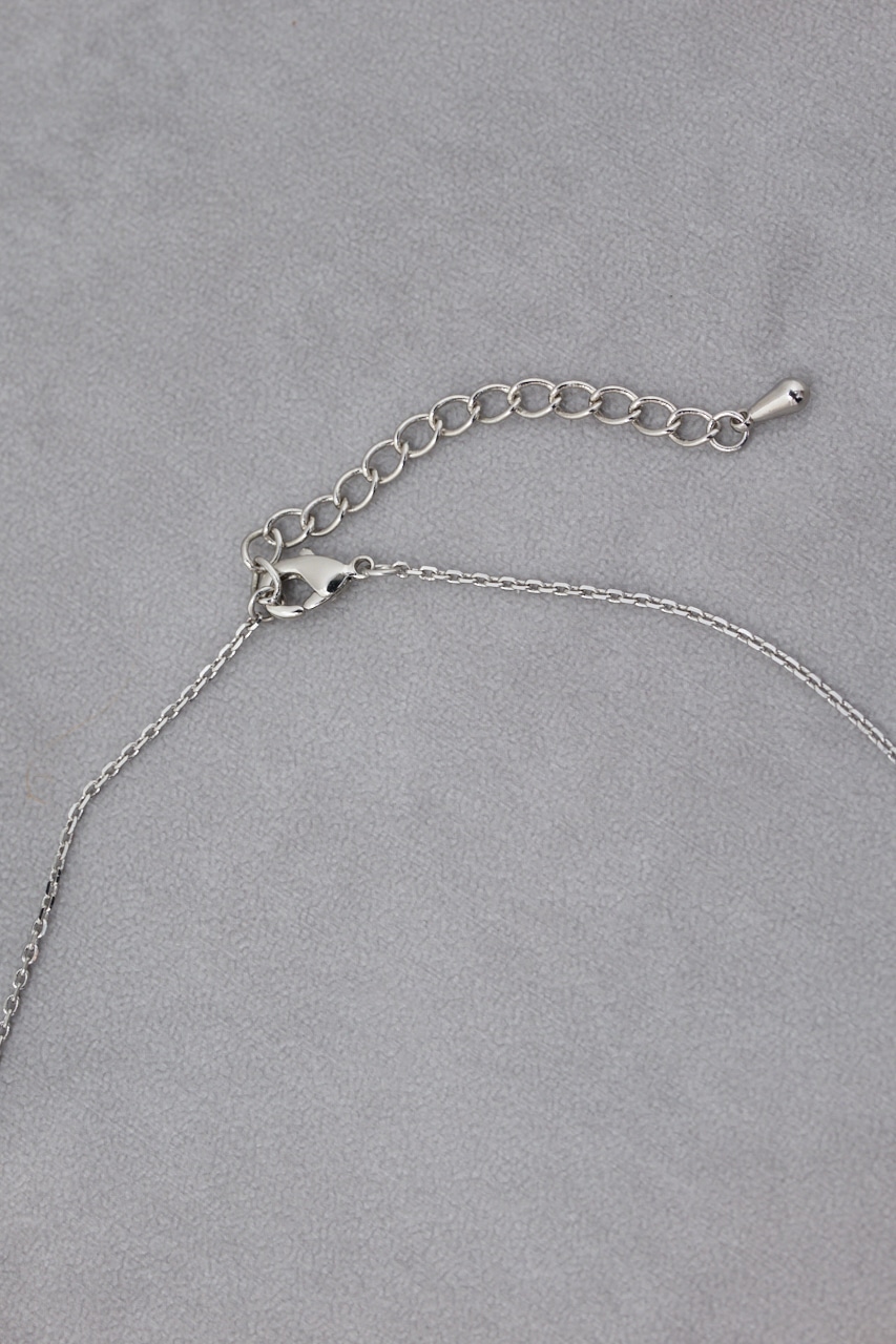 華奢なチェーンが首元を優しく飾り、軽やかさを演出。