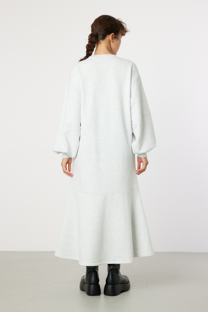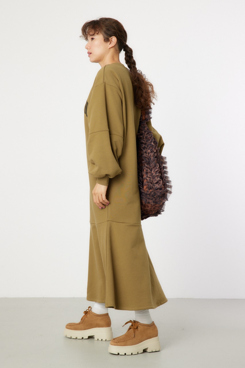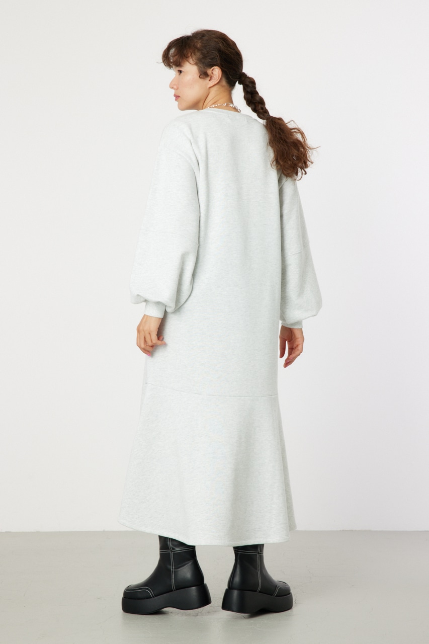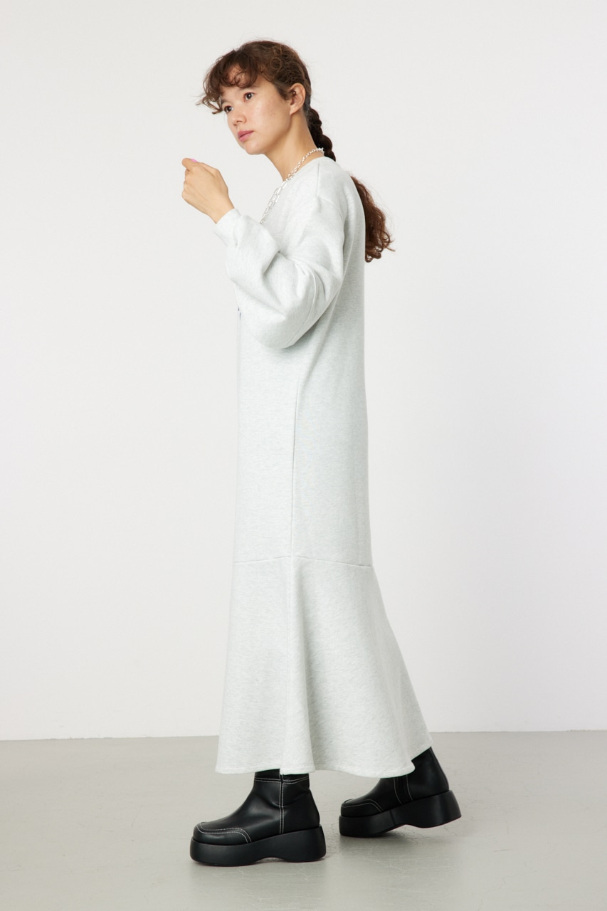 着心地抜群のスウェット素材のワンピース。ふわっと広がるマーメイドシルエットがポイント。これ一枚でコーディネートが完成するアイテムです。
