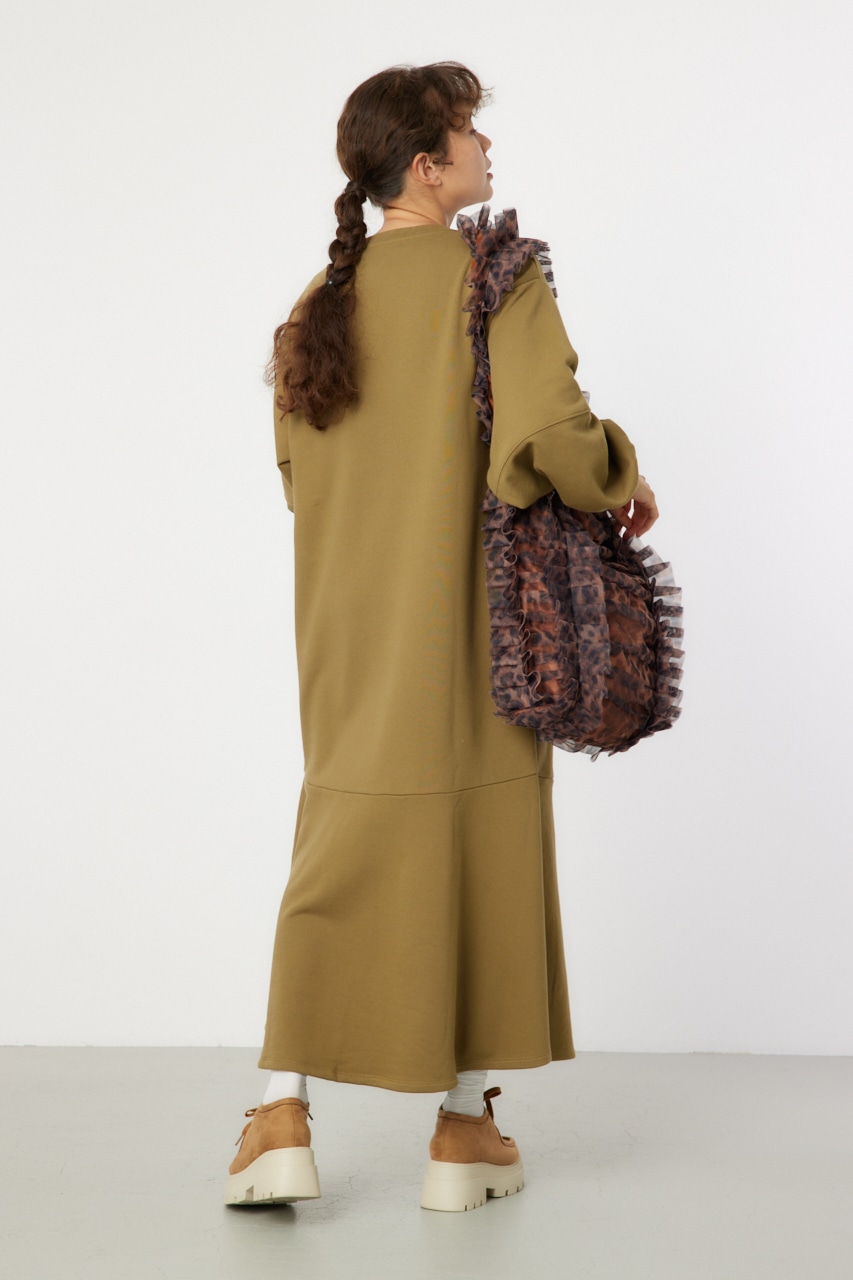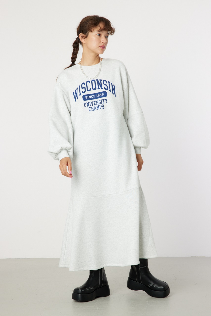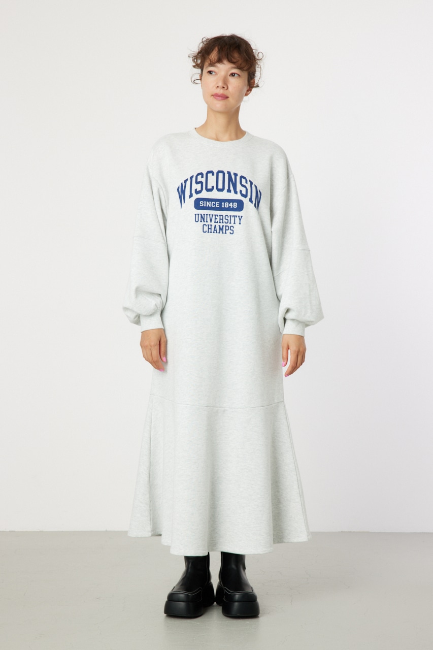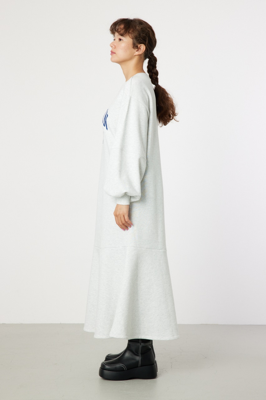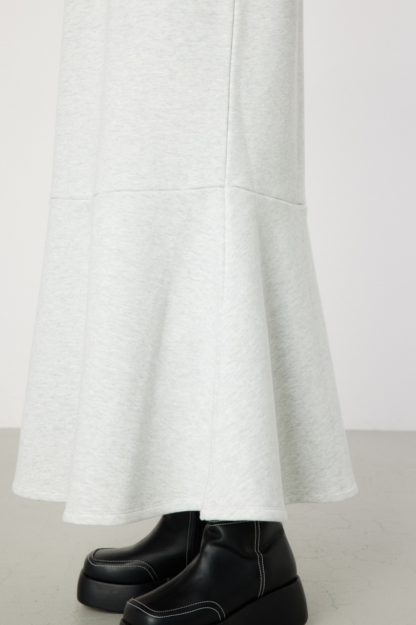 着心地抜群のスウェット素材のワンピース。ふわっと広がるマーメイドシルエットがポイント。これ一枚でコーディネートが完成するアイテムです。
