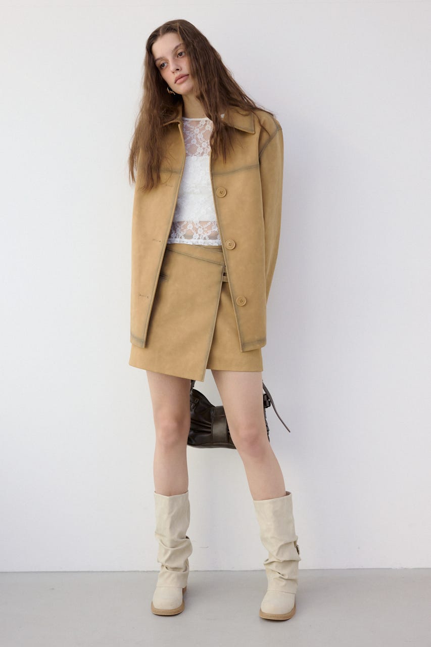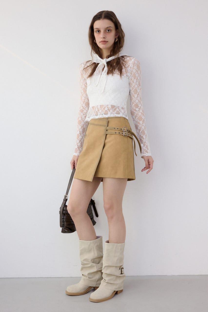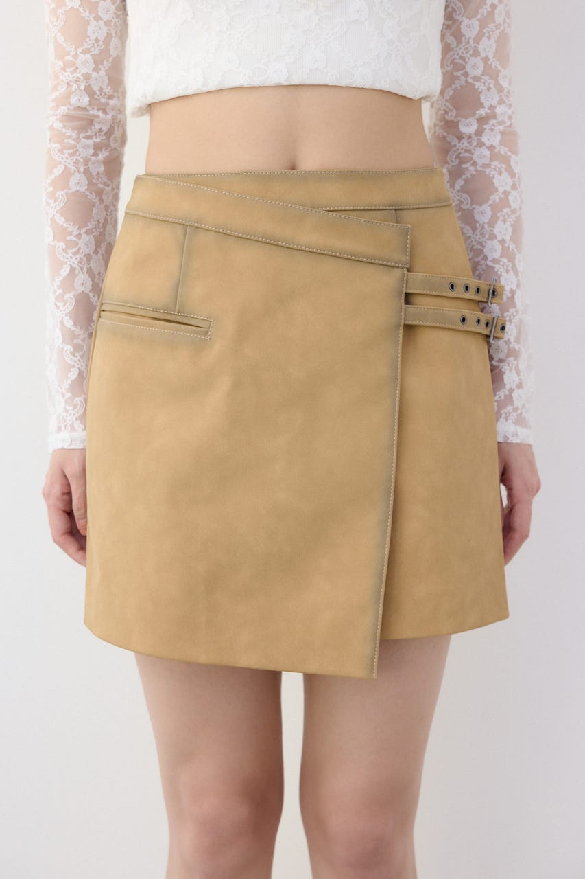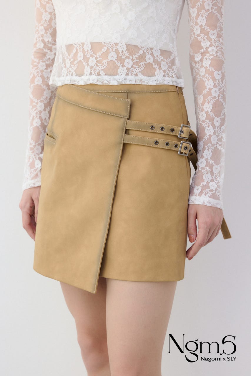 ■POINT:モデルとして活躍するなごみを起用して制作されたコラボレーション企画。エイジング加工を施した巻き風ミニスカート。