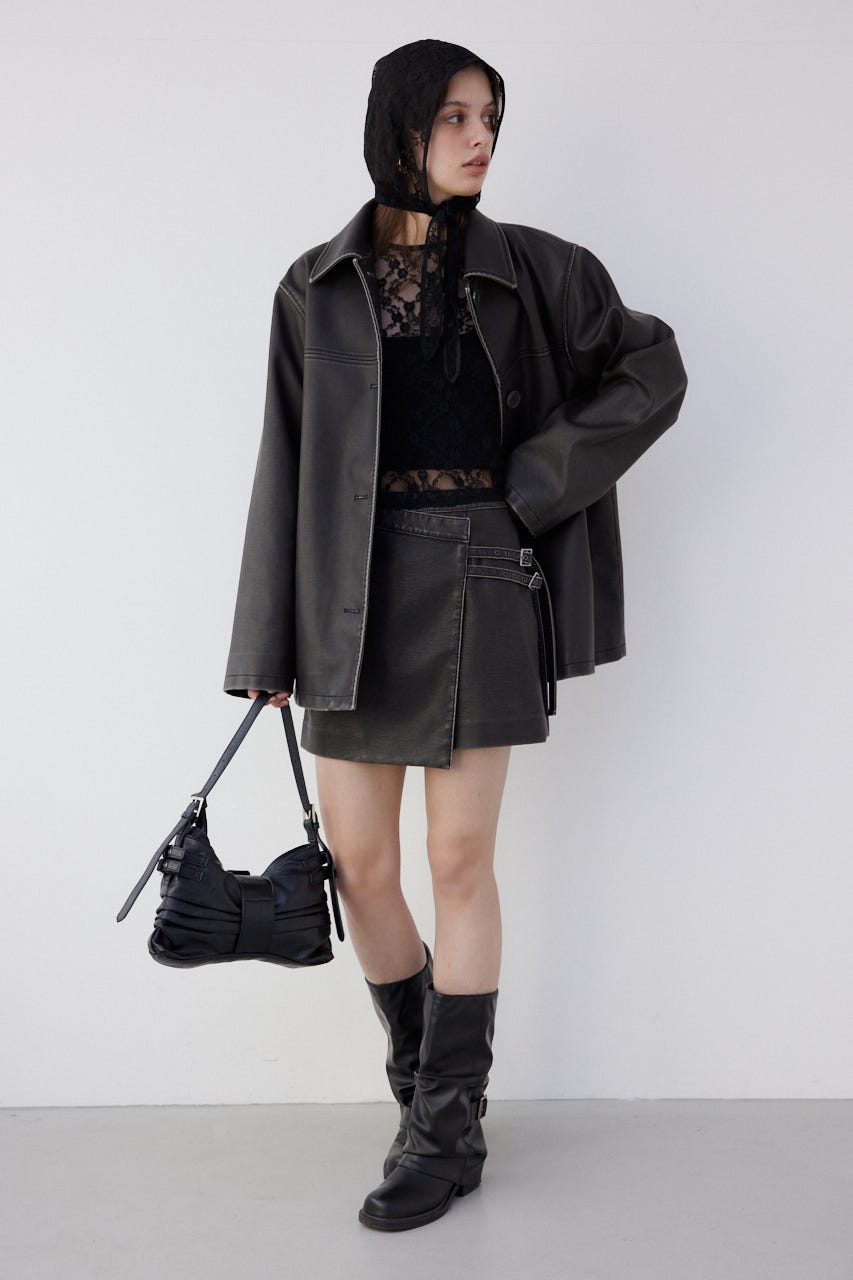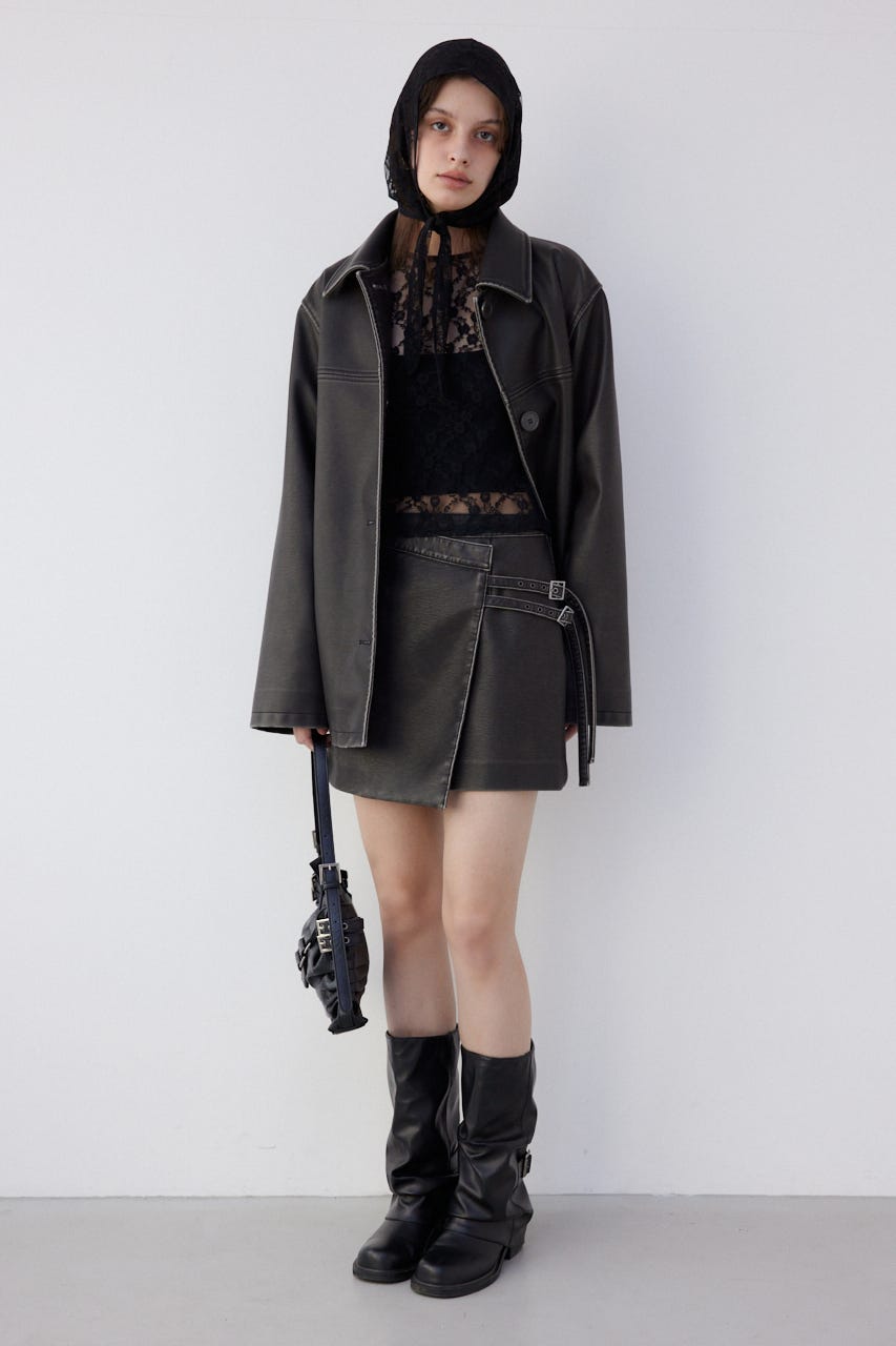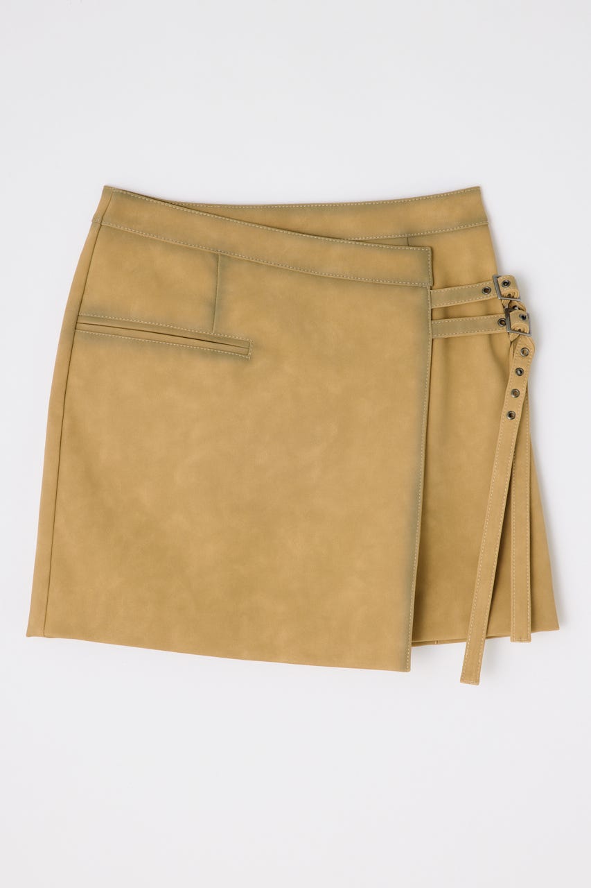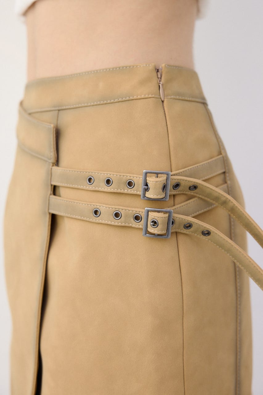 ■POINT:モデルとして活躍するなごみを起用して制作されたコラボレーション企画。エイジング加工を施した巻き風ミニスカート。