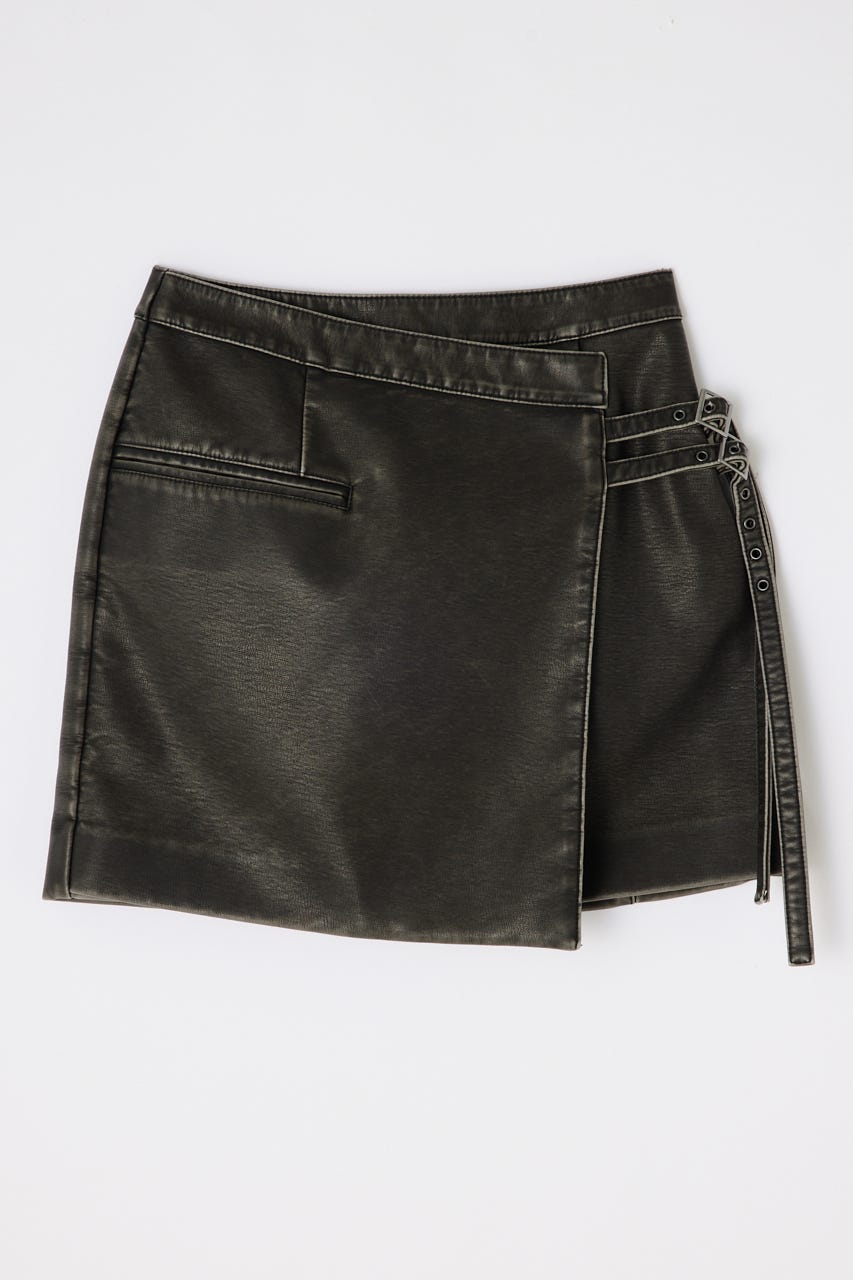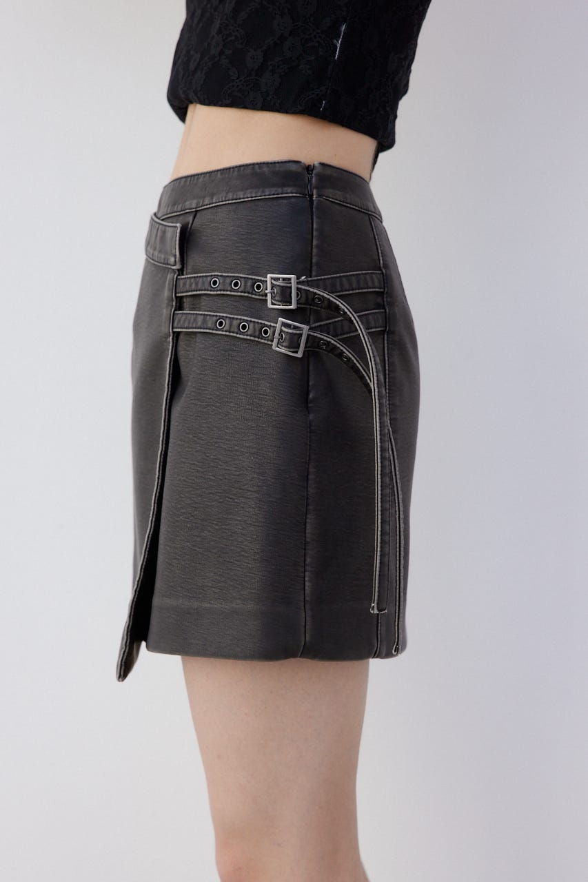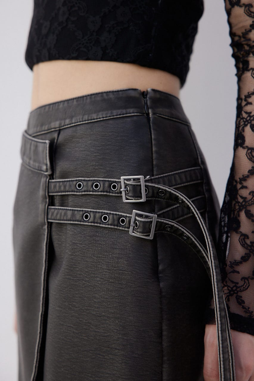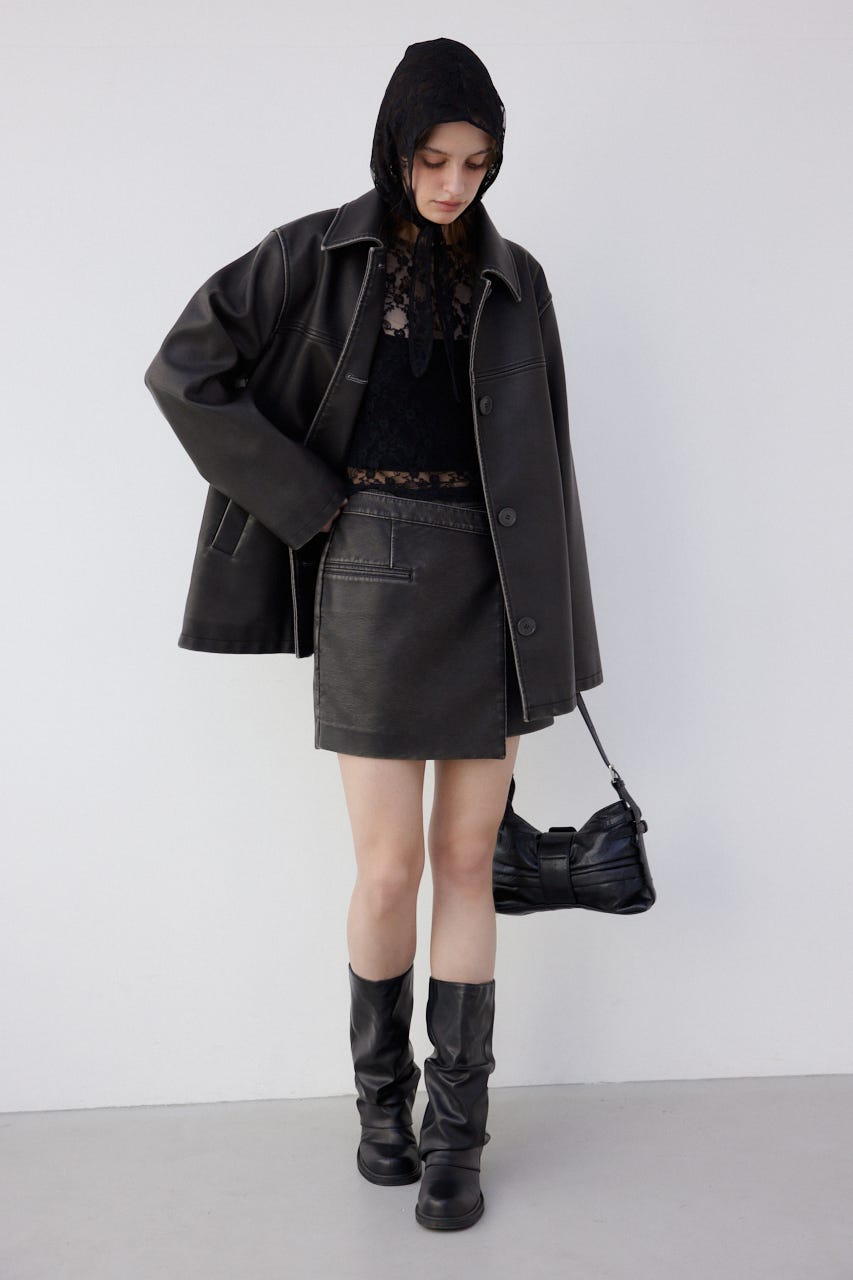 ■POINT:モデルとして活躍するなごみを起用して制作されたコラボレーション企画。エイジング加工を施した巻き風ミニスカート。