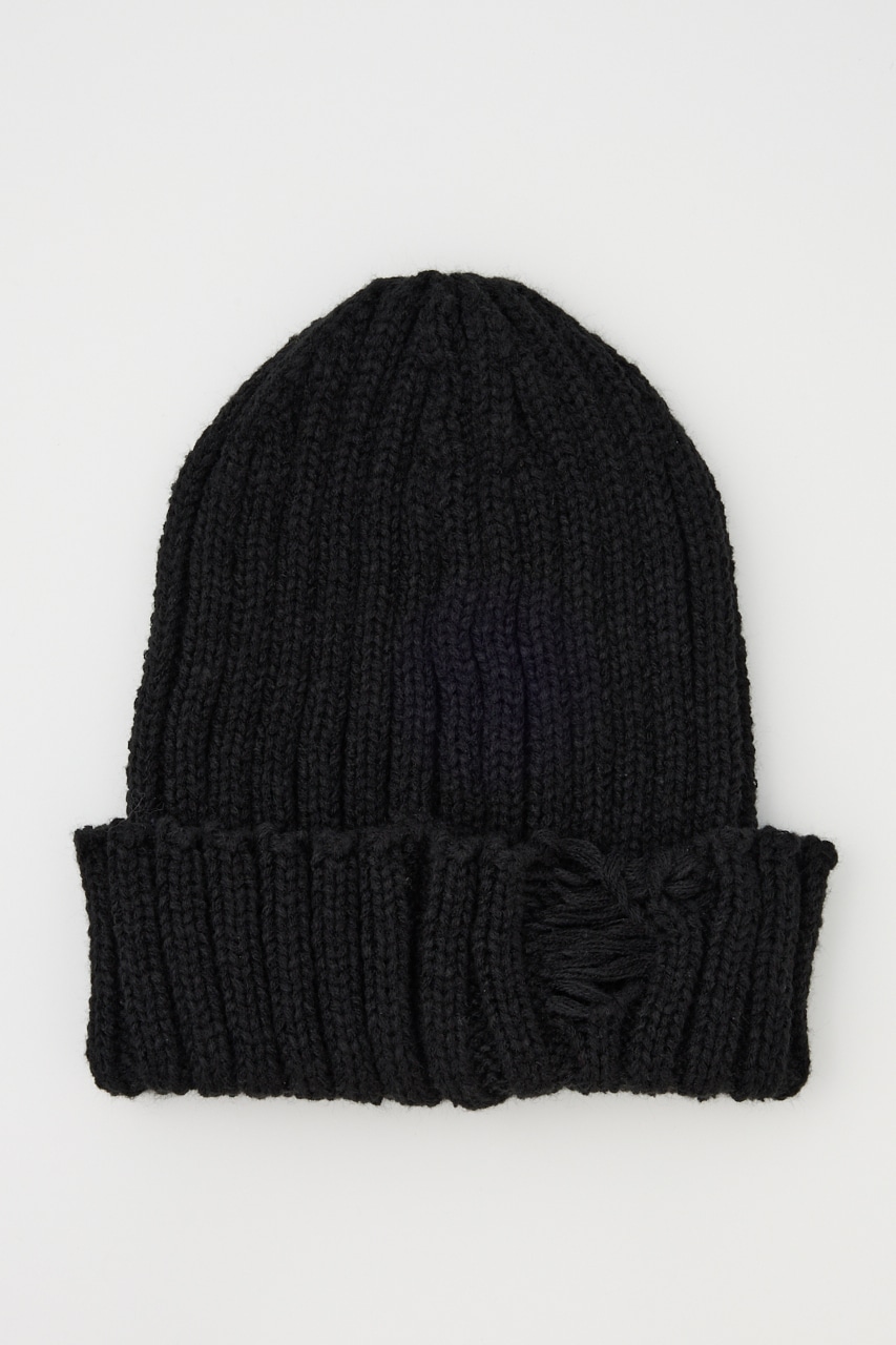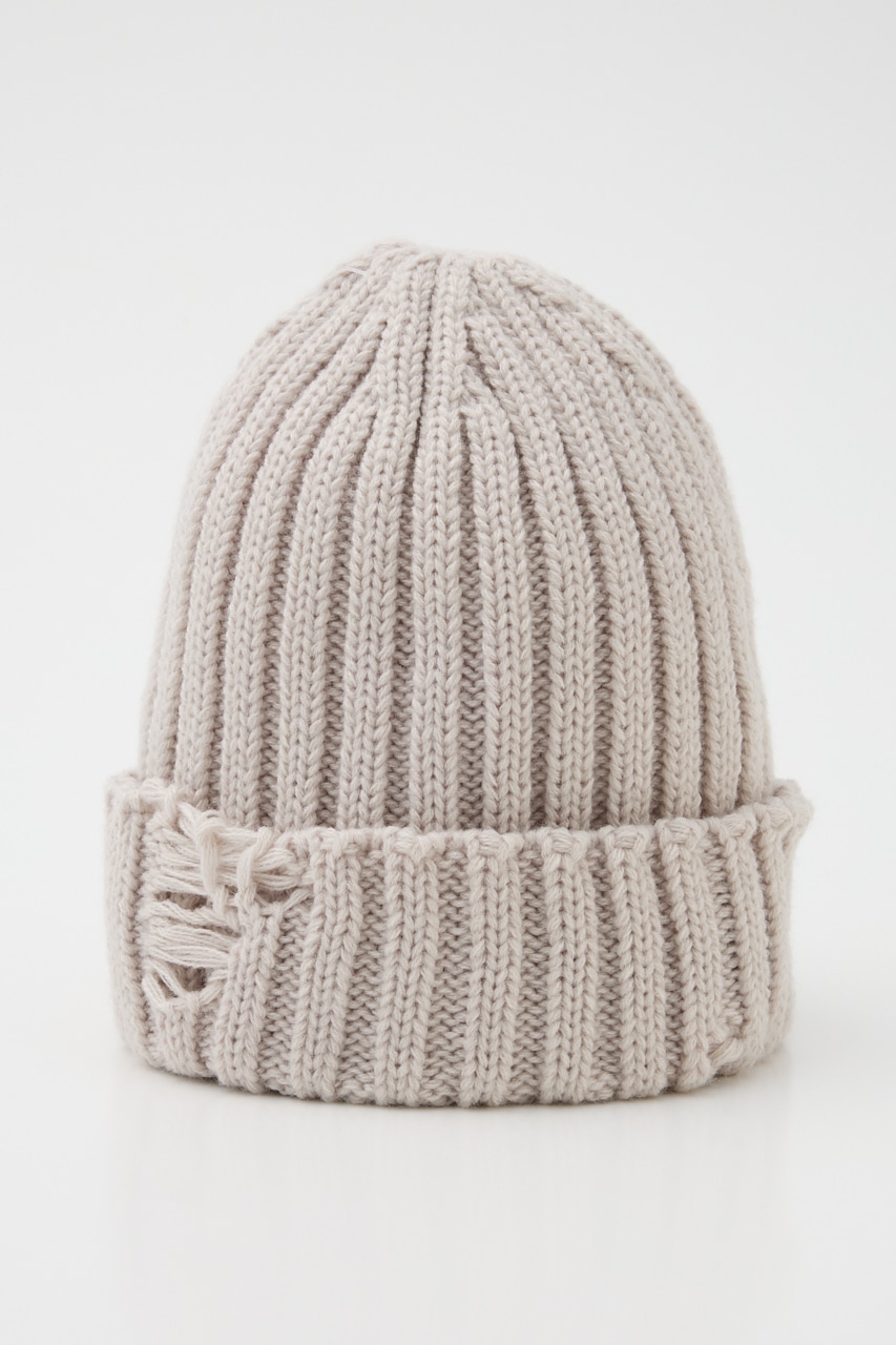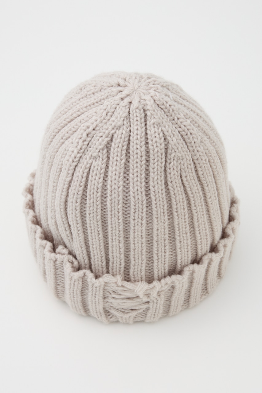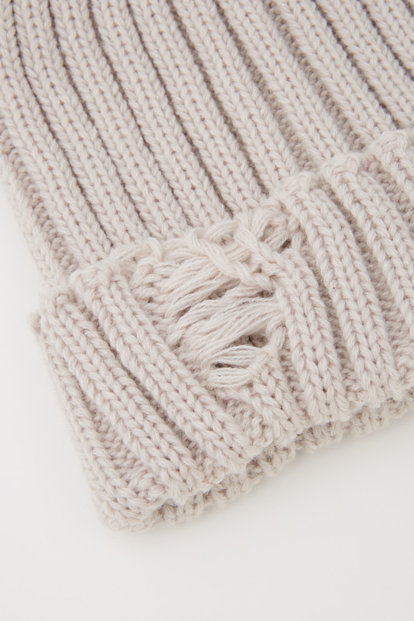 太めに編んだボリューム感のあるニットワッチ。折り返し部分にダメージ加工を施し、一癖あるデザインがポイント。
