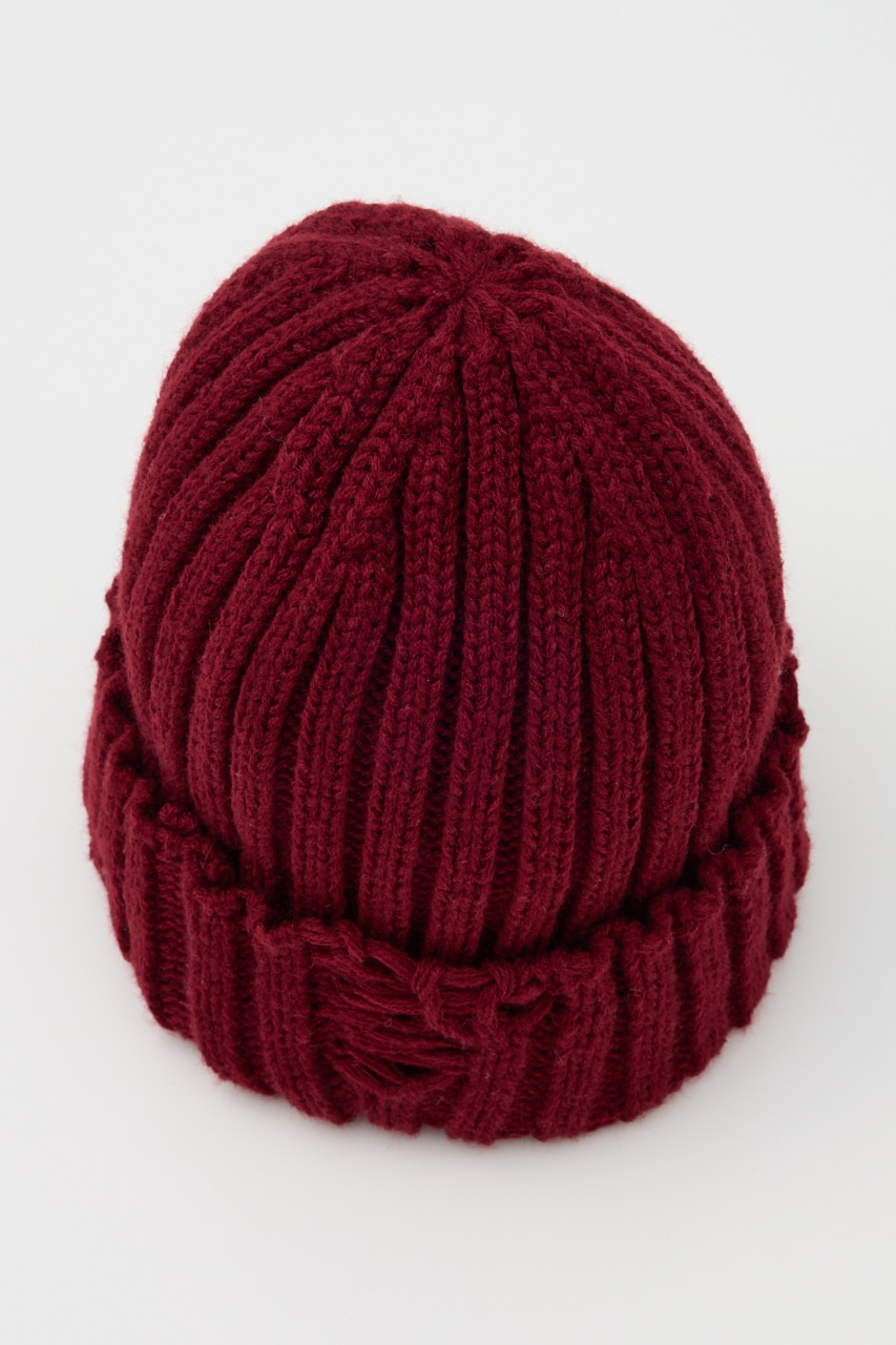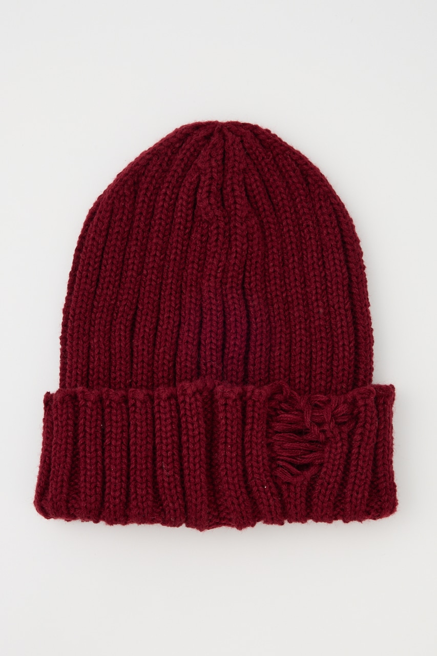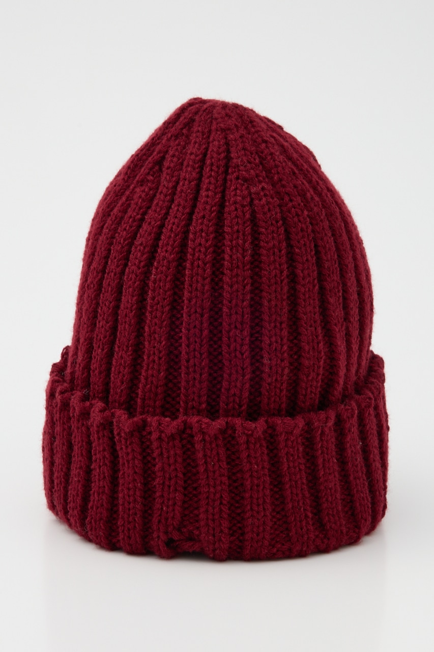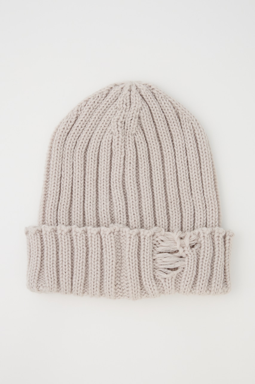 太めに編んだボリューム感のあるニットワッチ。折り返し部分にダメージ加工を施し、一癖あるデザインがポイント。