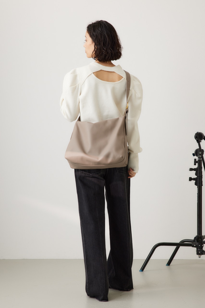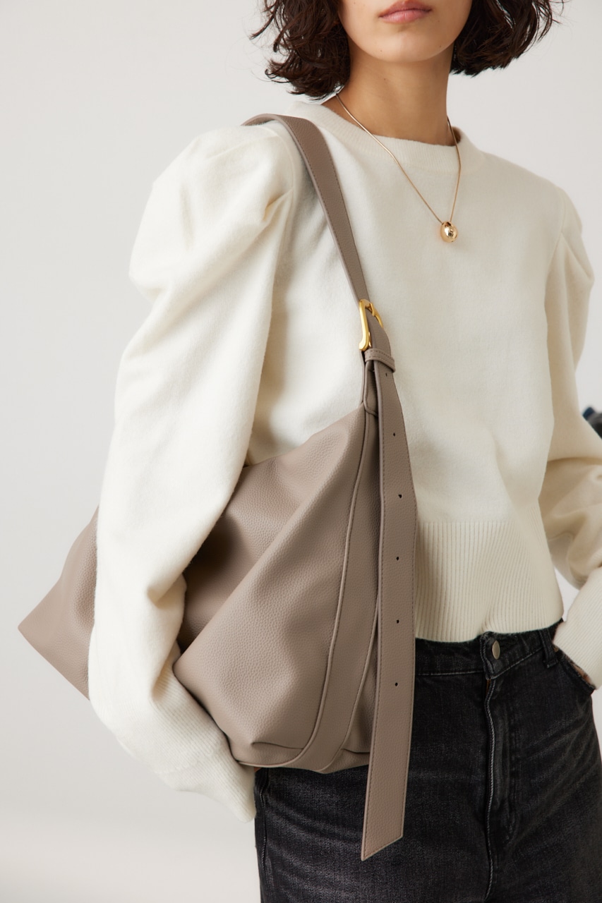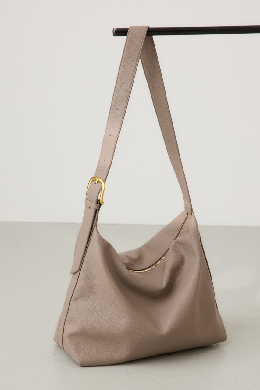 ■商品ポイント:大きなバックルがポイントのシンプルなスクエアのショルダーバッグ。