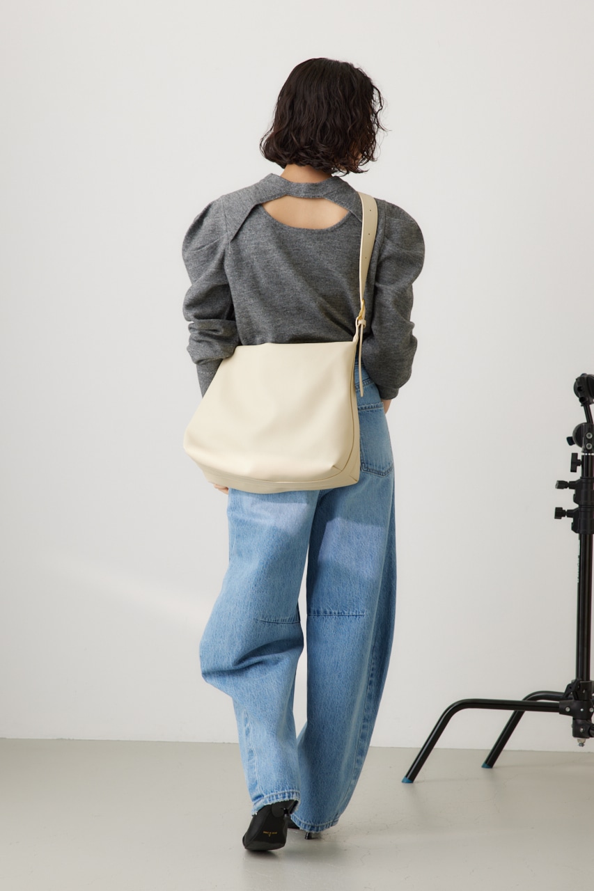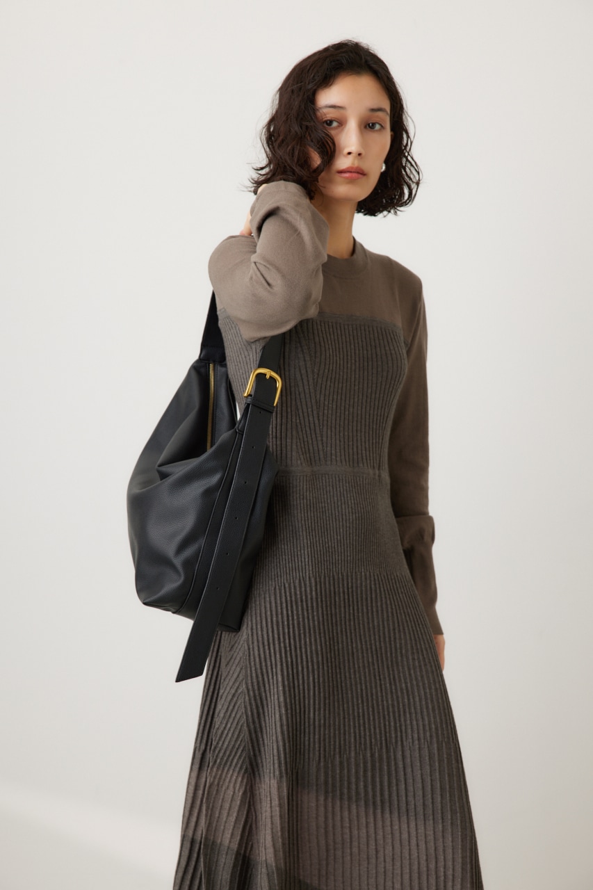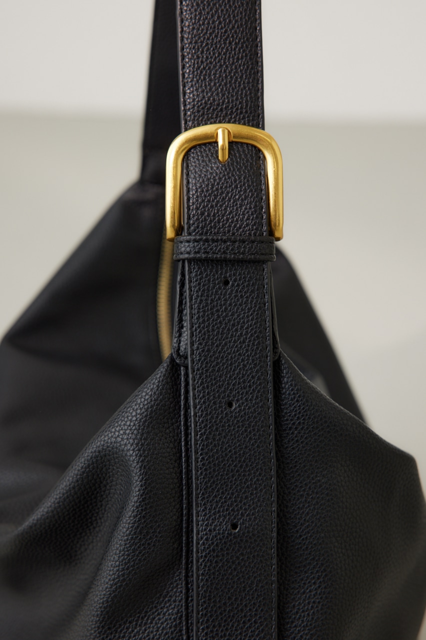 ■商品ポイント:大きなバックルがポイントのシンプルなスクエアのショルダーバッグ。