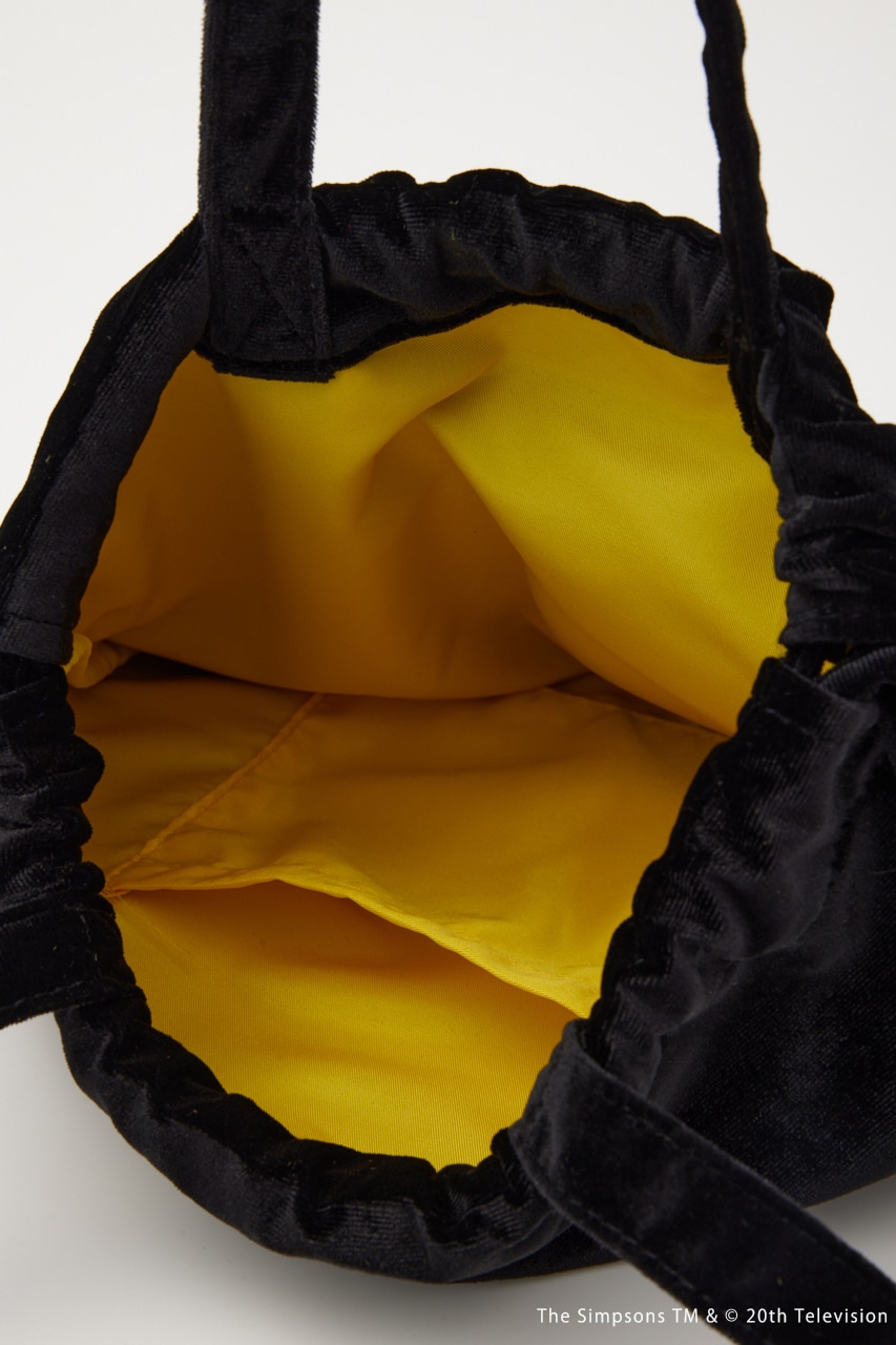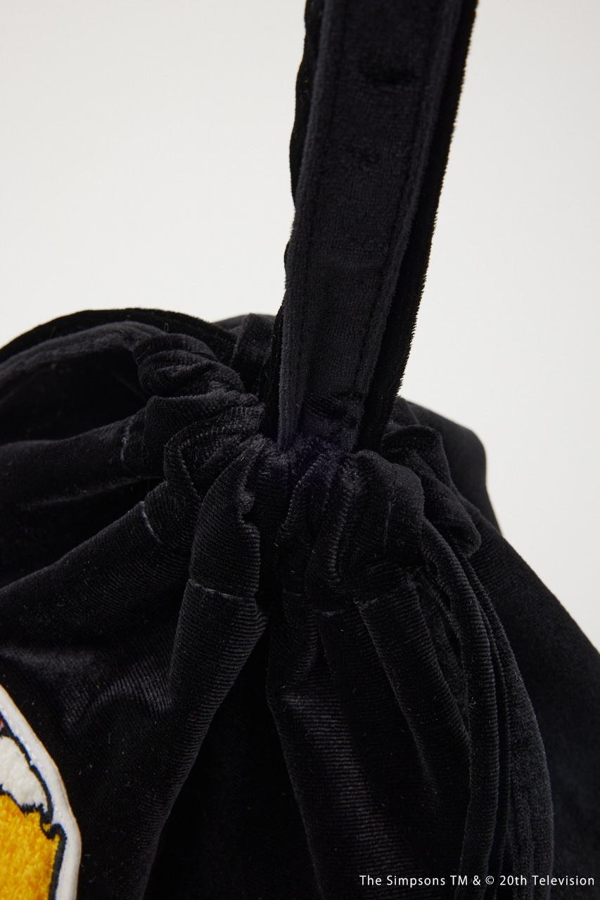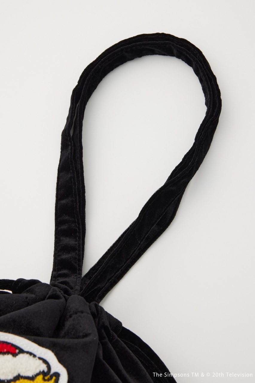 ホリデーシーズンを意識したスペシャルなデザインで、ベロア素材を使用したトートバッグ。相良刺繍で表現されたクリスマスソングを歌うバートのワッペンがポイント。裏面にはホリデーメッセージとRODEOのロゴを刺繍で施しました。上部の紐を絞れば巾着型としても使用できるアイテムです。