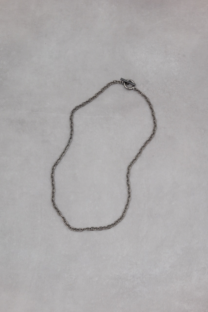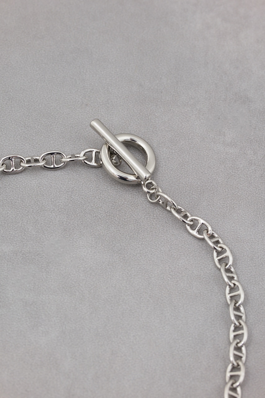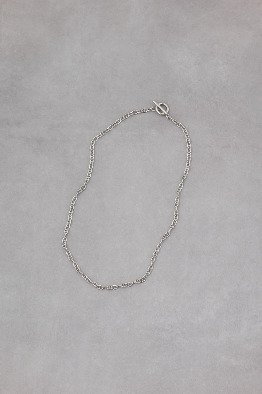 小さめのアンカーチェーンに留め具をマンテル仕様にしたデザインが存在感あり高見えするポイントです。