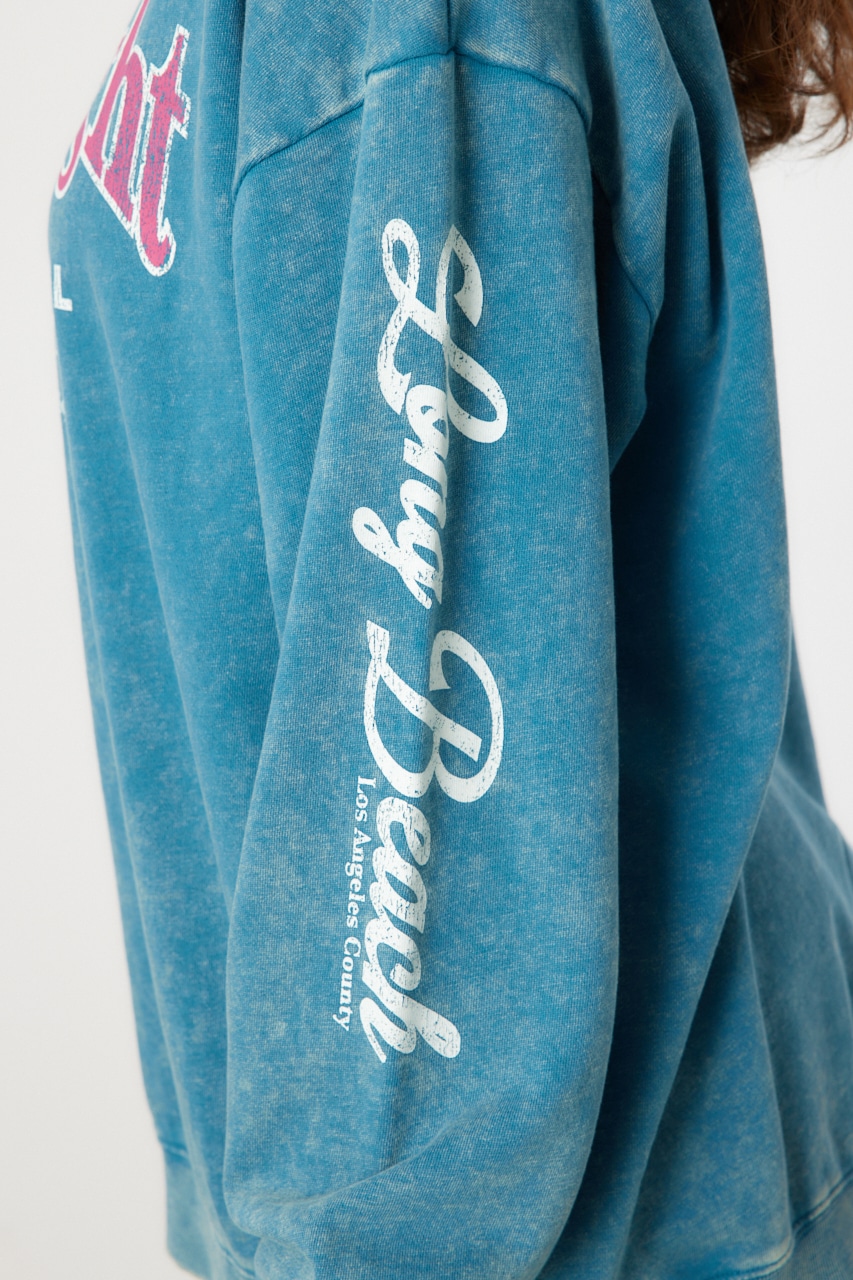 存在感のあるヴィンテージ加工が施されたスウェット。ドロップショルダーでゆったり着こなせるサイズ感。シンプルなボトムスに合わせるだけで着映えする万能なアイテム。