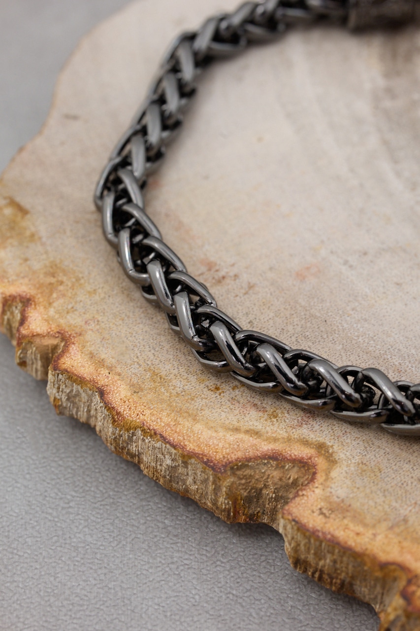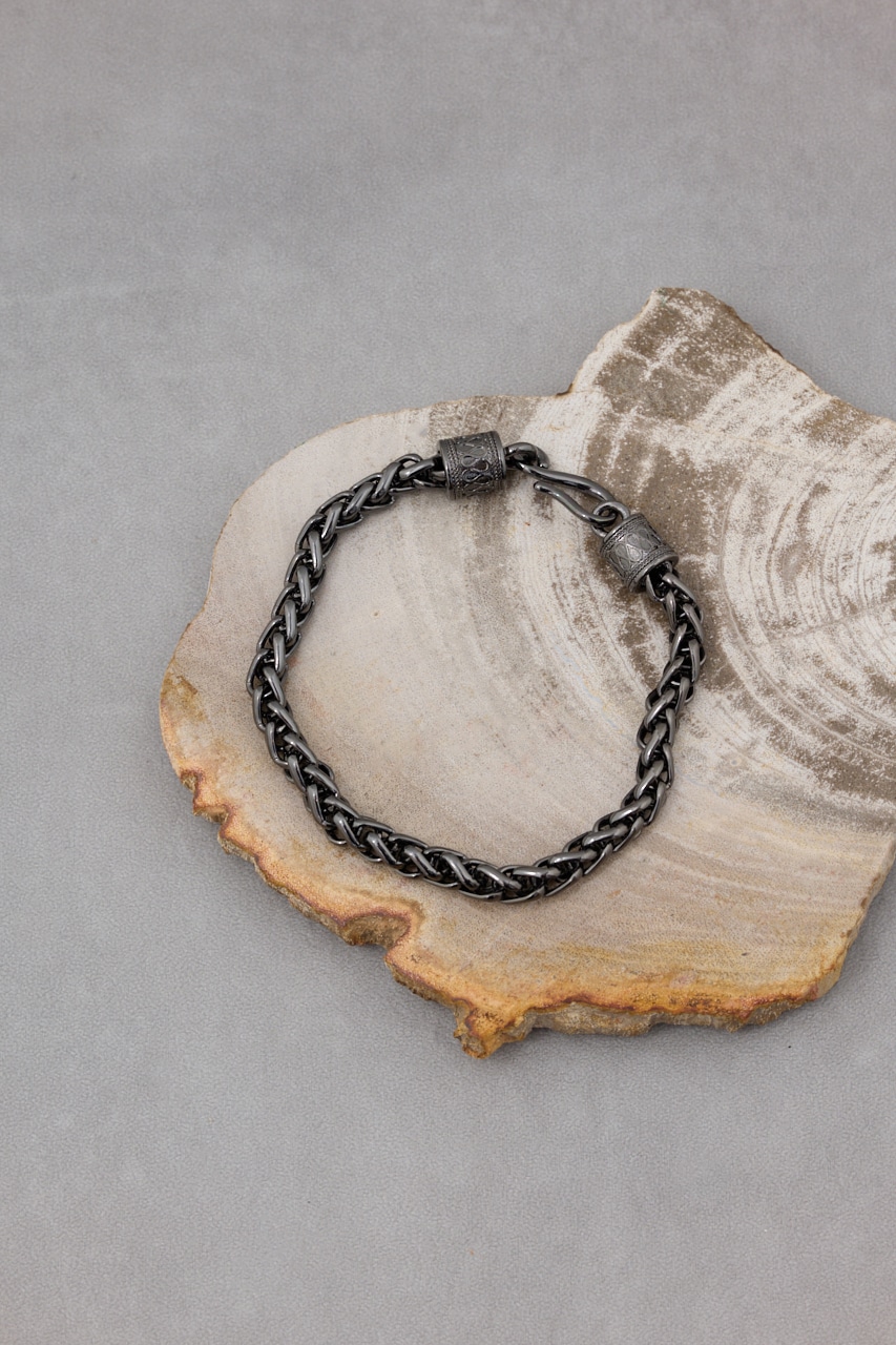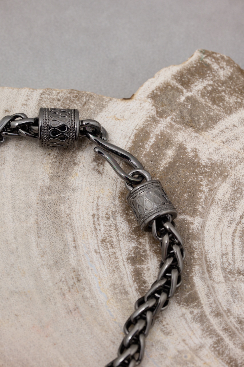 真鍮製のツイストチェーンにモチーフをつけたかっこいいブレスレットです。