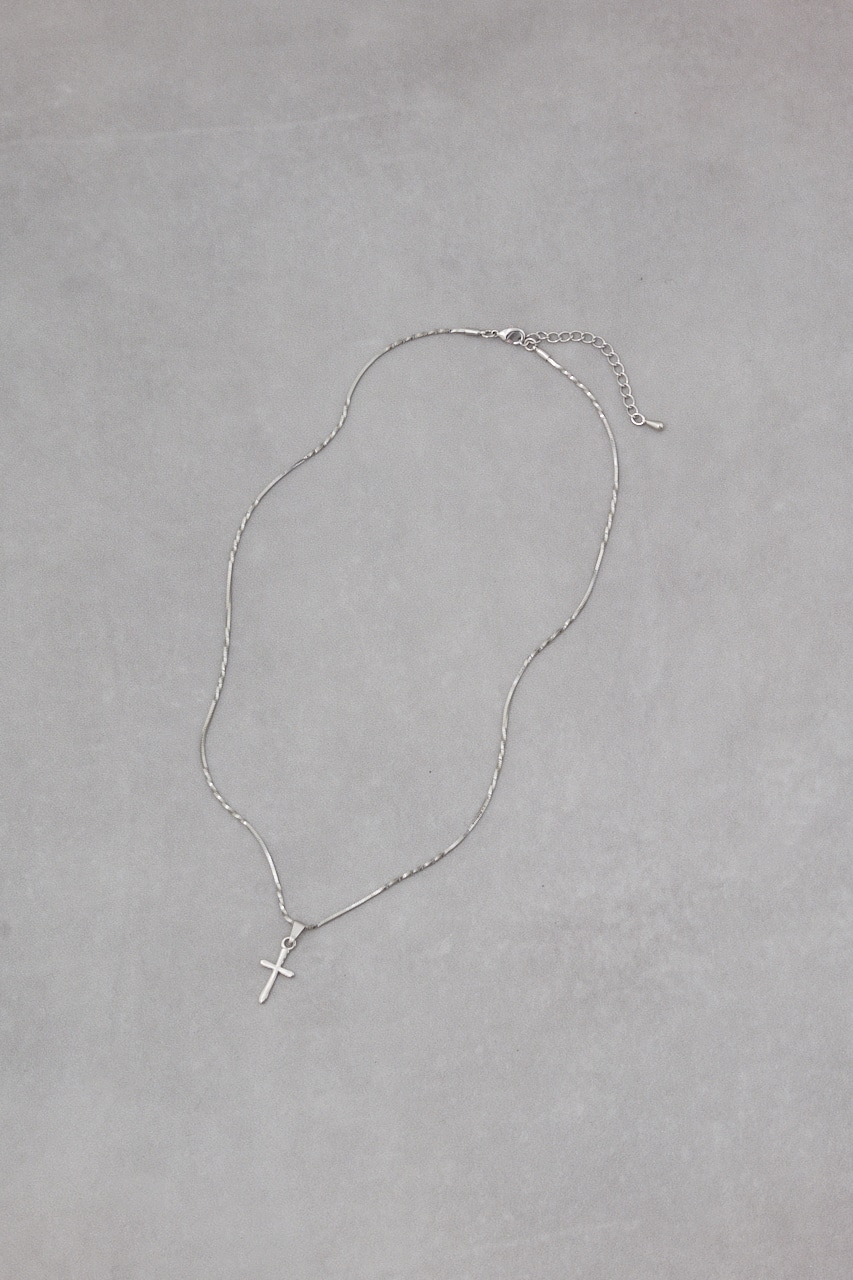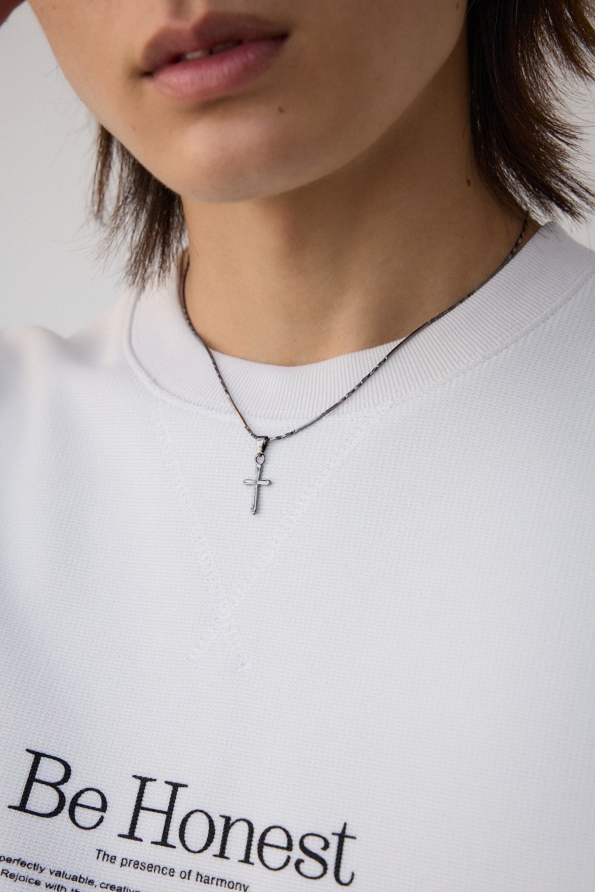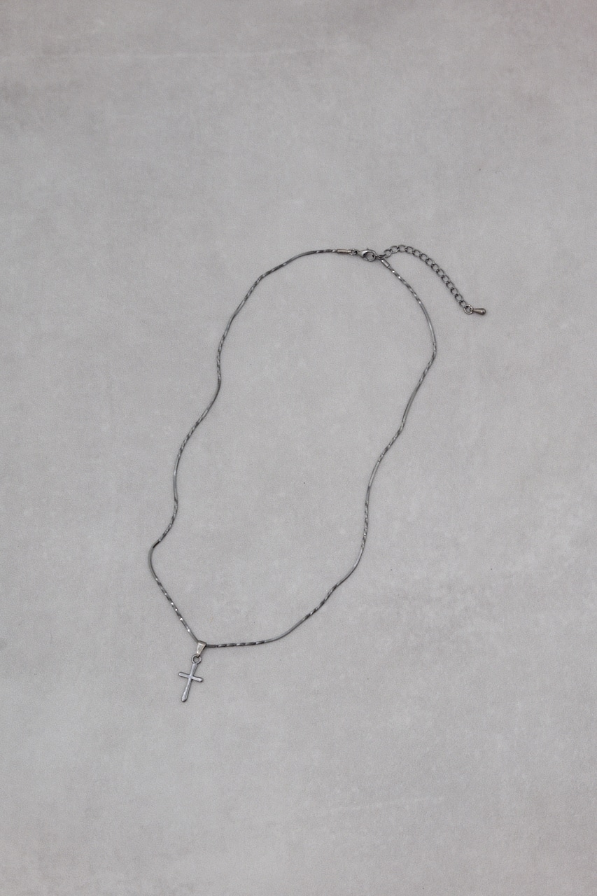細目のランダムツイストチェーンにミニクロスモチーフのヘッドが首元のアクセントに抜群です。