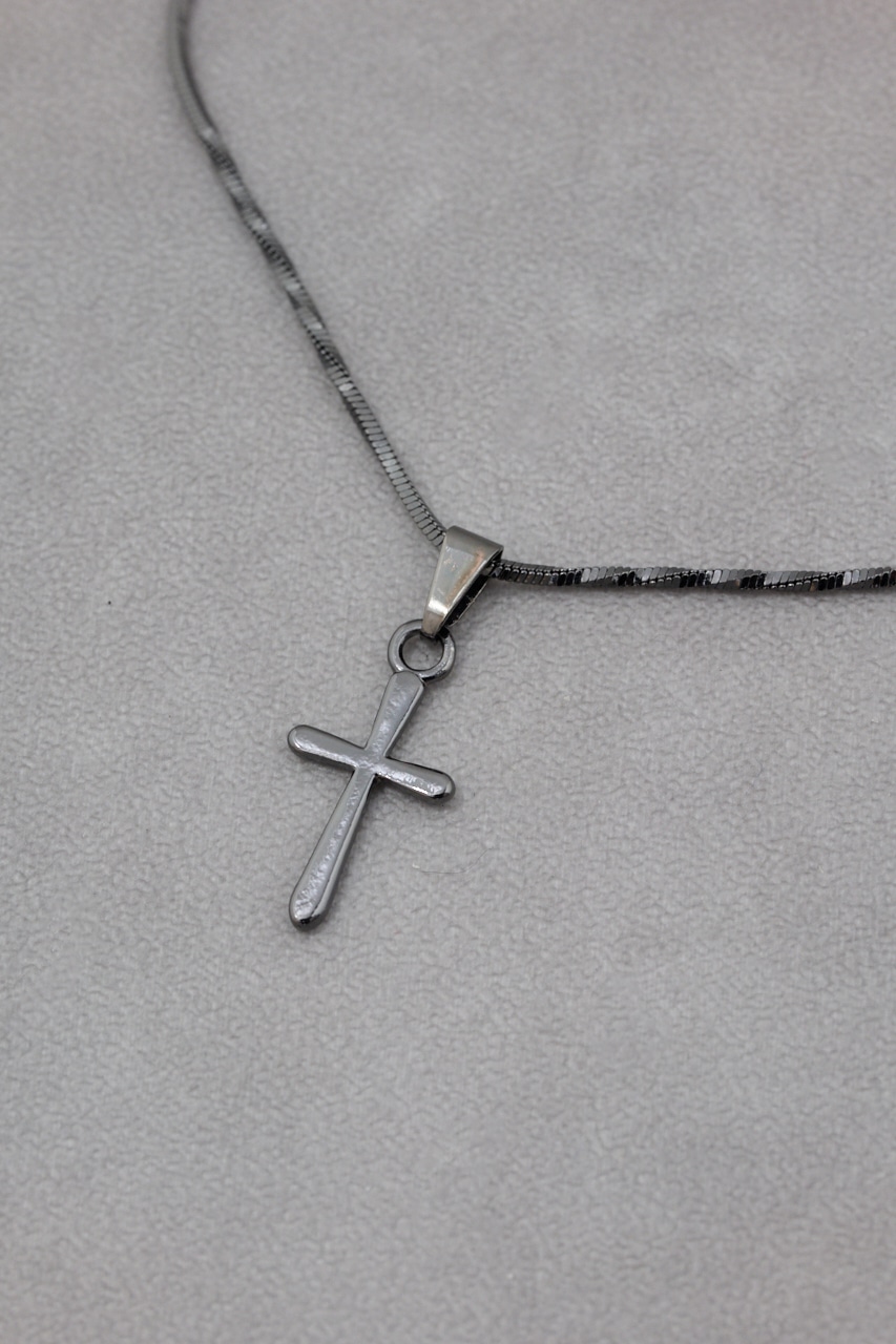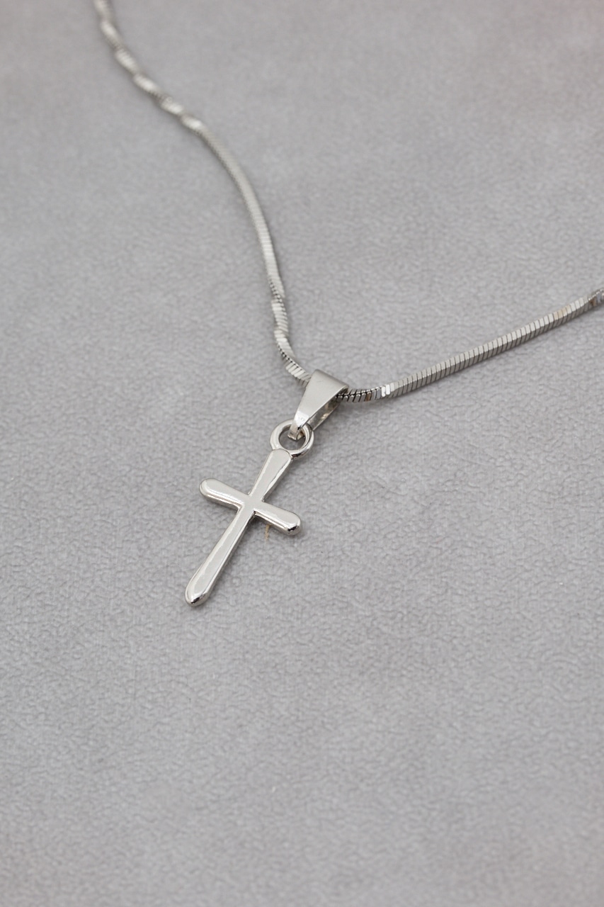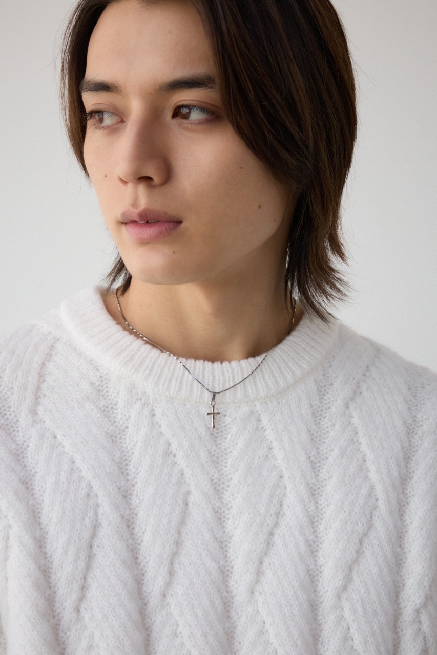 細目のランダムツイストチェーンにミニクロスモチーフのヘッドが首元のアクセントに抜群です。