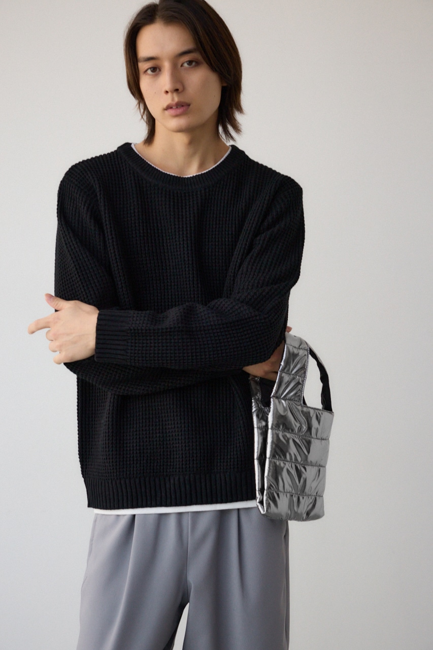 ニット製品はニット素材の特性上、サイズ感には若干の個体差がございます。予めご了承ください。