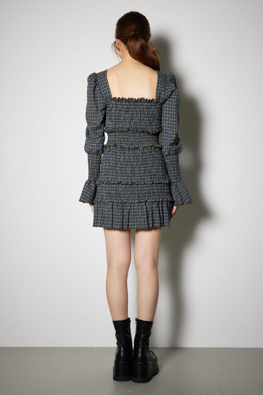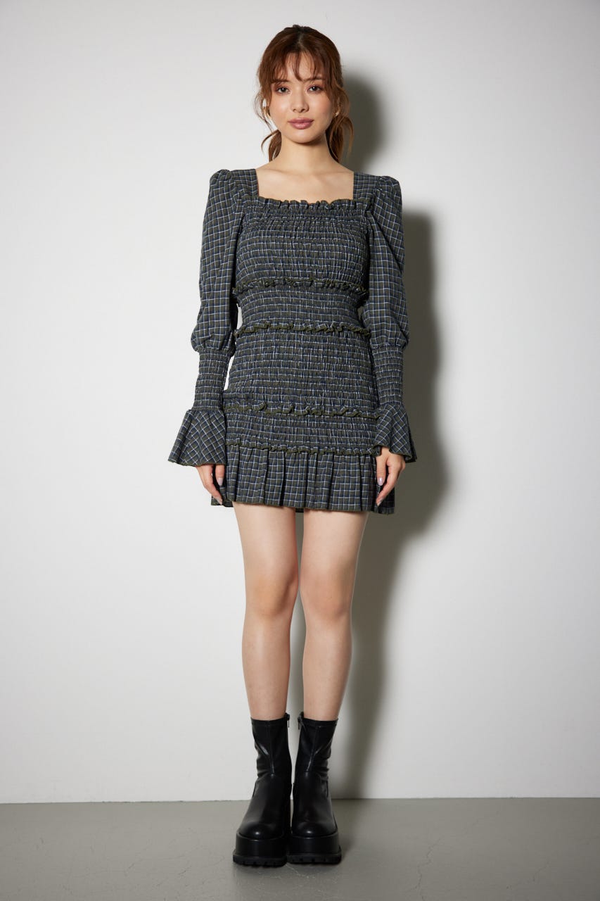 シャーリングミニワンピース】