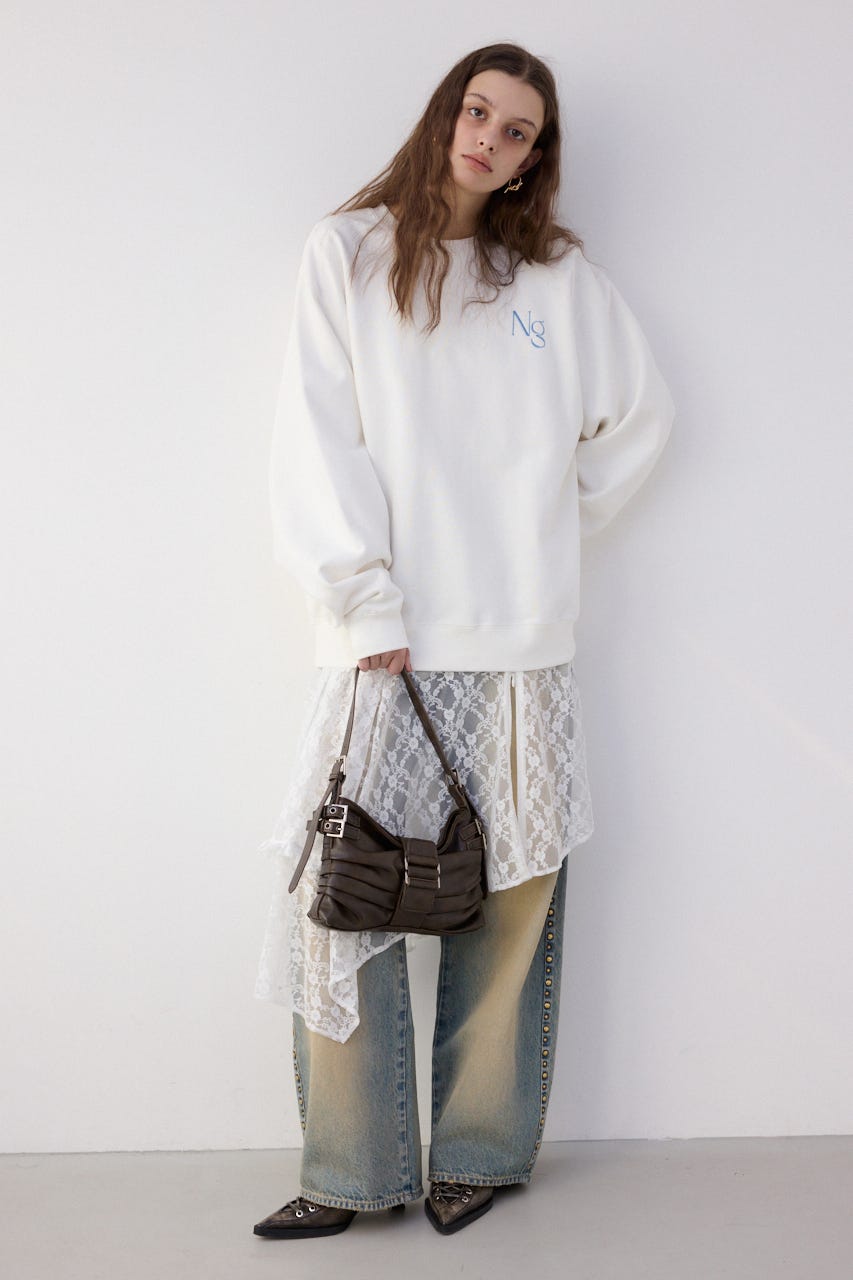 ■POINT:モデルとして活躍するなごみを起用して制作されたコラボレーション企画。ユニセックスで着用できるサイズ感のスウェットトップス。コラボロゴマークの刺繍が目を惹くシンプルなワンポイントデザインです。