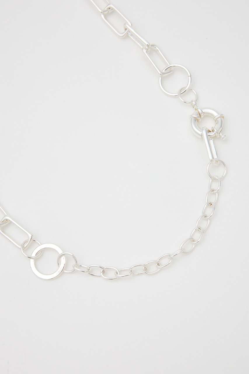 様々な形のチェーンがミックスされたネックレス。太めのチェーンなので、華奢な首元を演出してくれます。ニットやスウェットにプラスするだけで、こなれた印象に。季節を問わず、1年中楽しめるアイテムです。