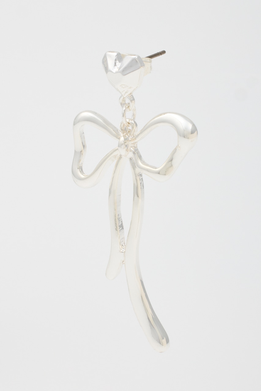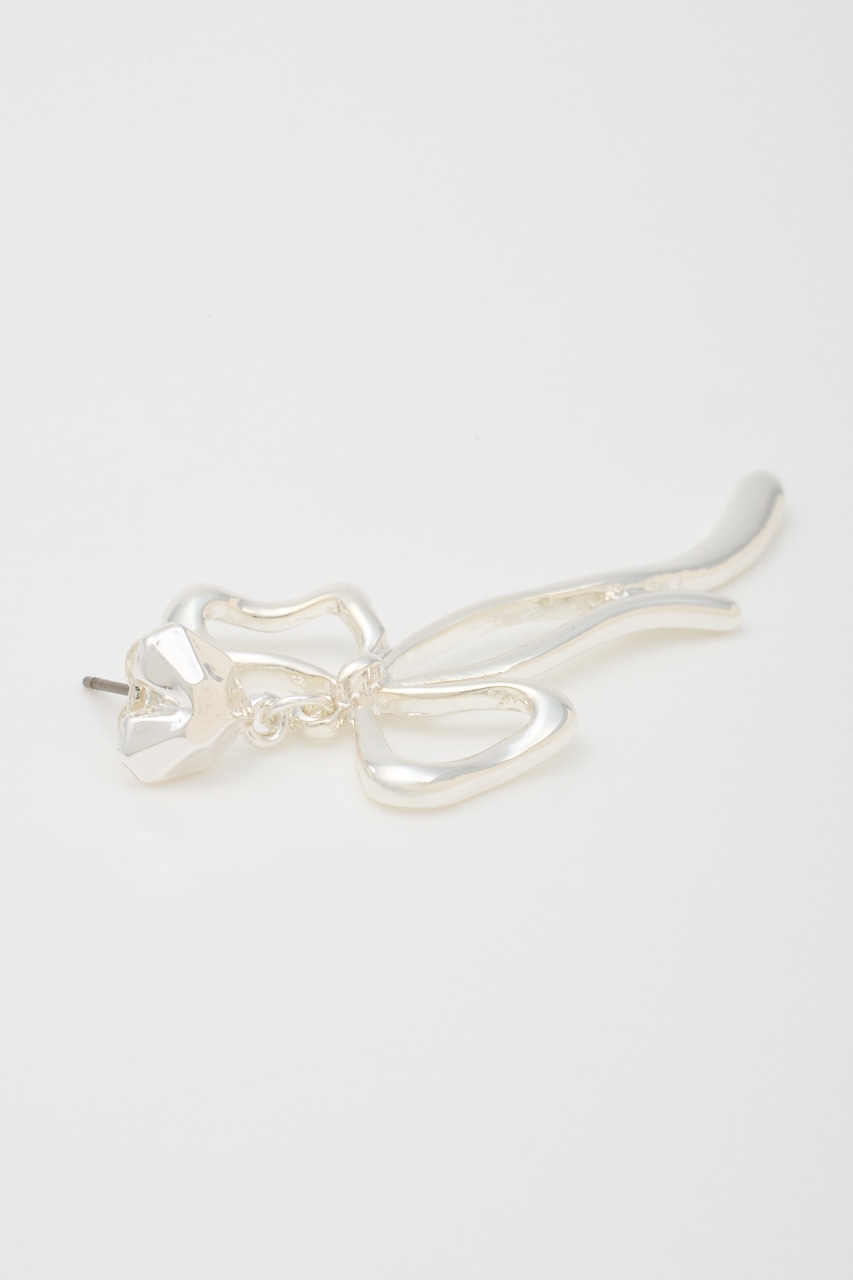 今季トレンドのリボンモチーフのピアス。一見可愛くなりがちなデザインですが、カジュアルなアイテムとも相性抜群。細いフレームと、長めに垂れたデザインがポイント。