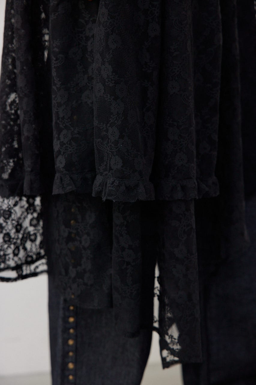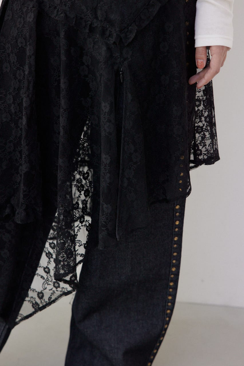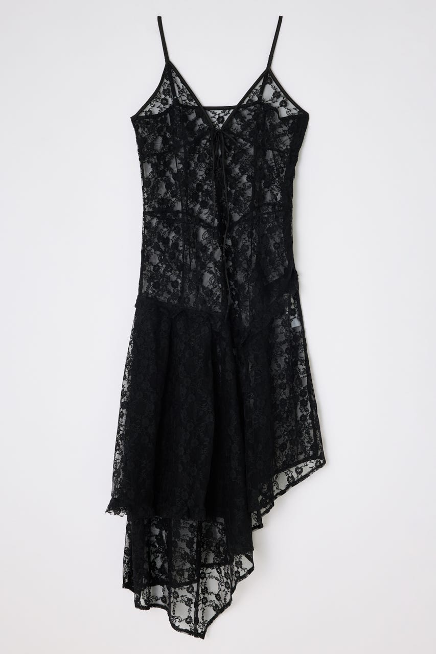 ■DETAIL:コンシールファスナーを開けるとスリットが入るデザインで、フロントのレースアップとアシンメトリーなヘムがポイントです。