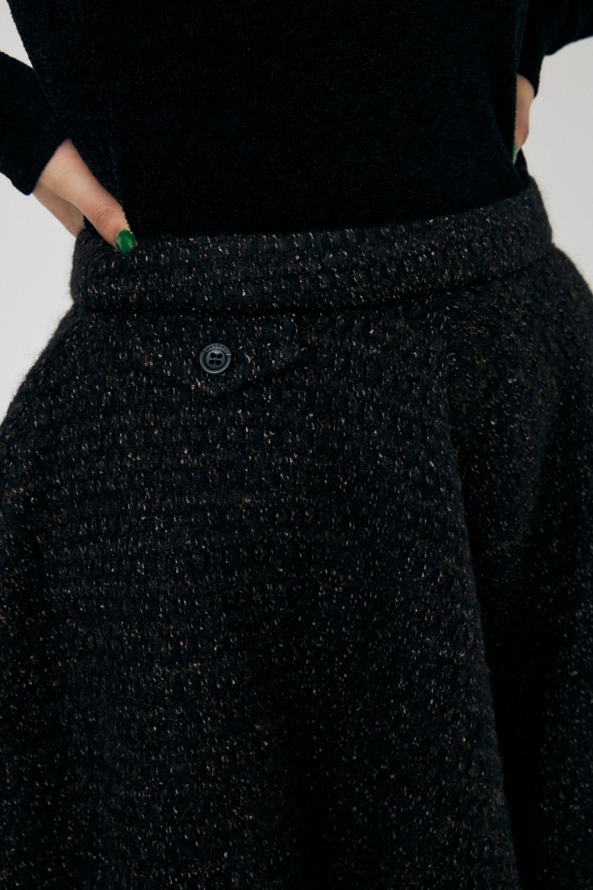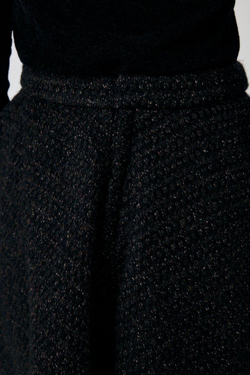 たっぷりとしたサーキュラーのボリュームが特徴的な、女性らしさを引き立てるミニスカート。