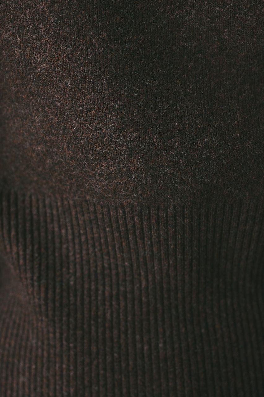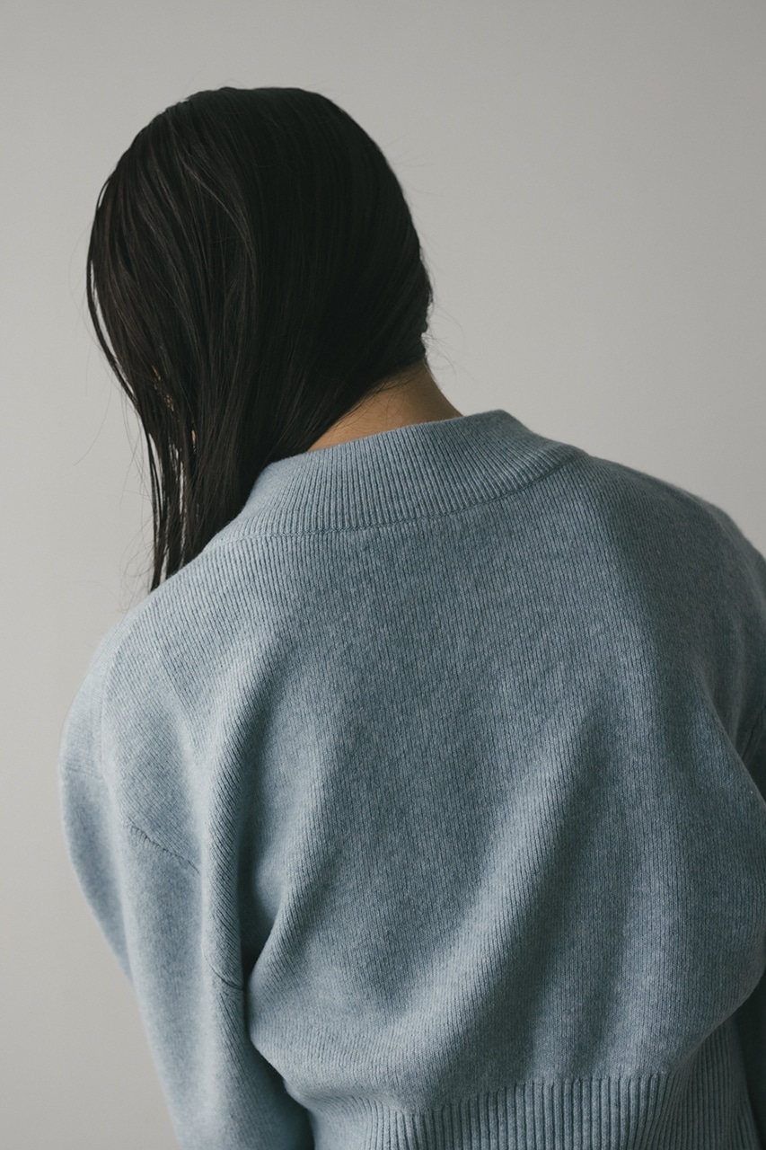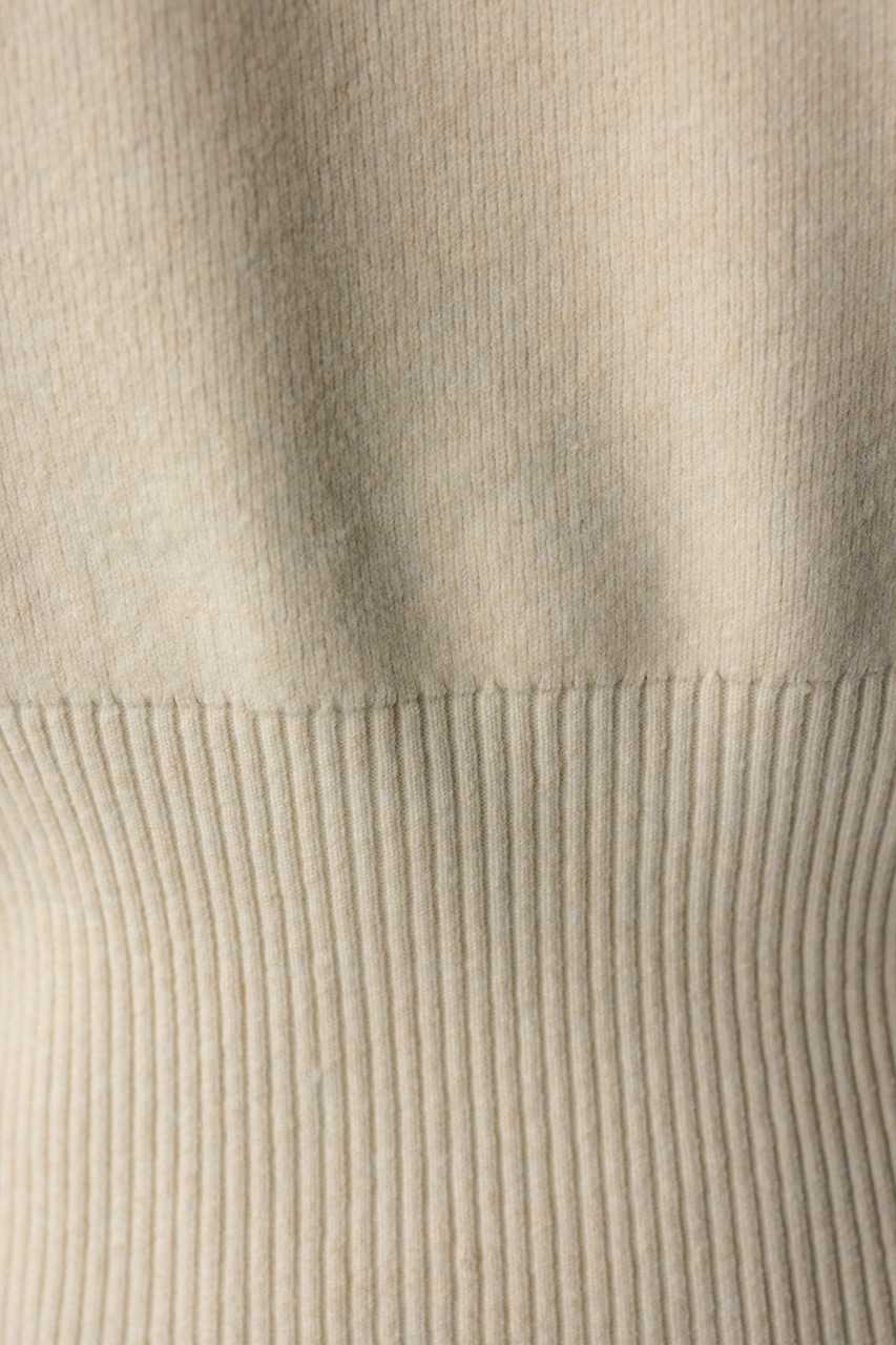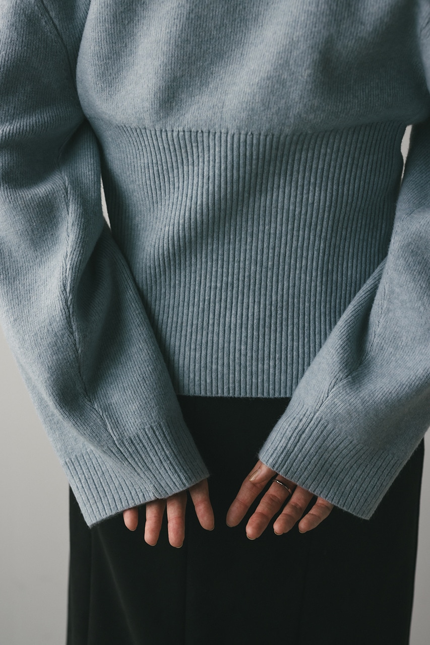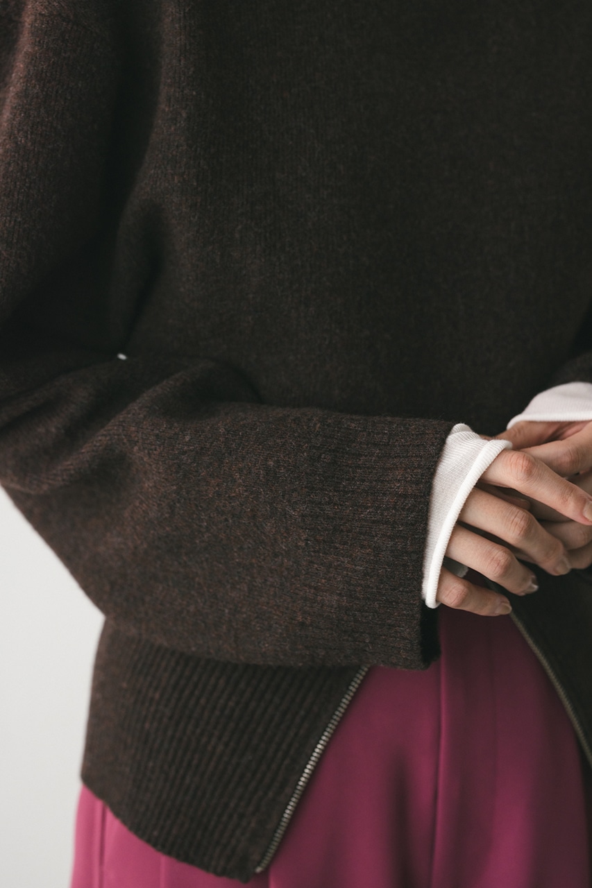 ウエストリブと裾ジップが特徴的なハイネックニット。